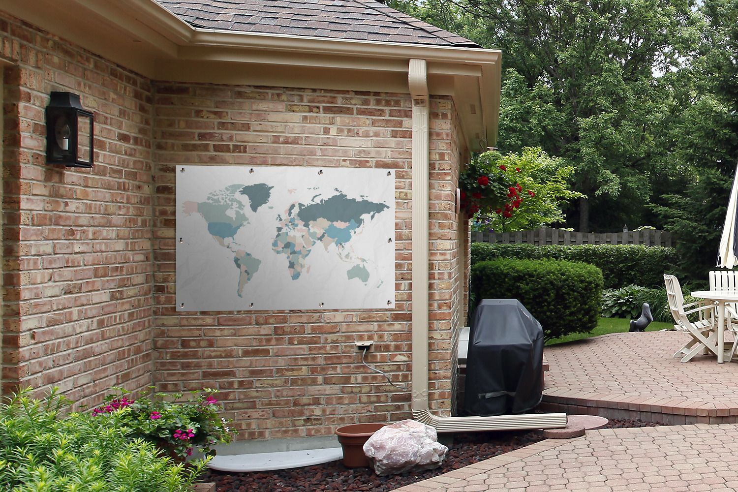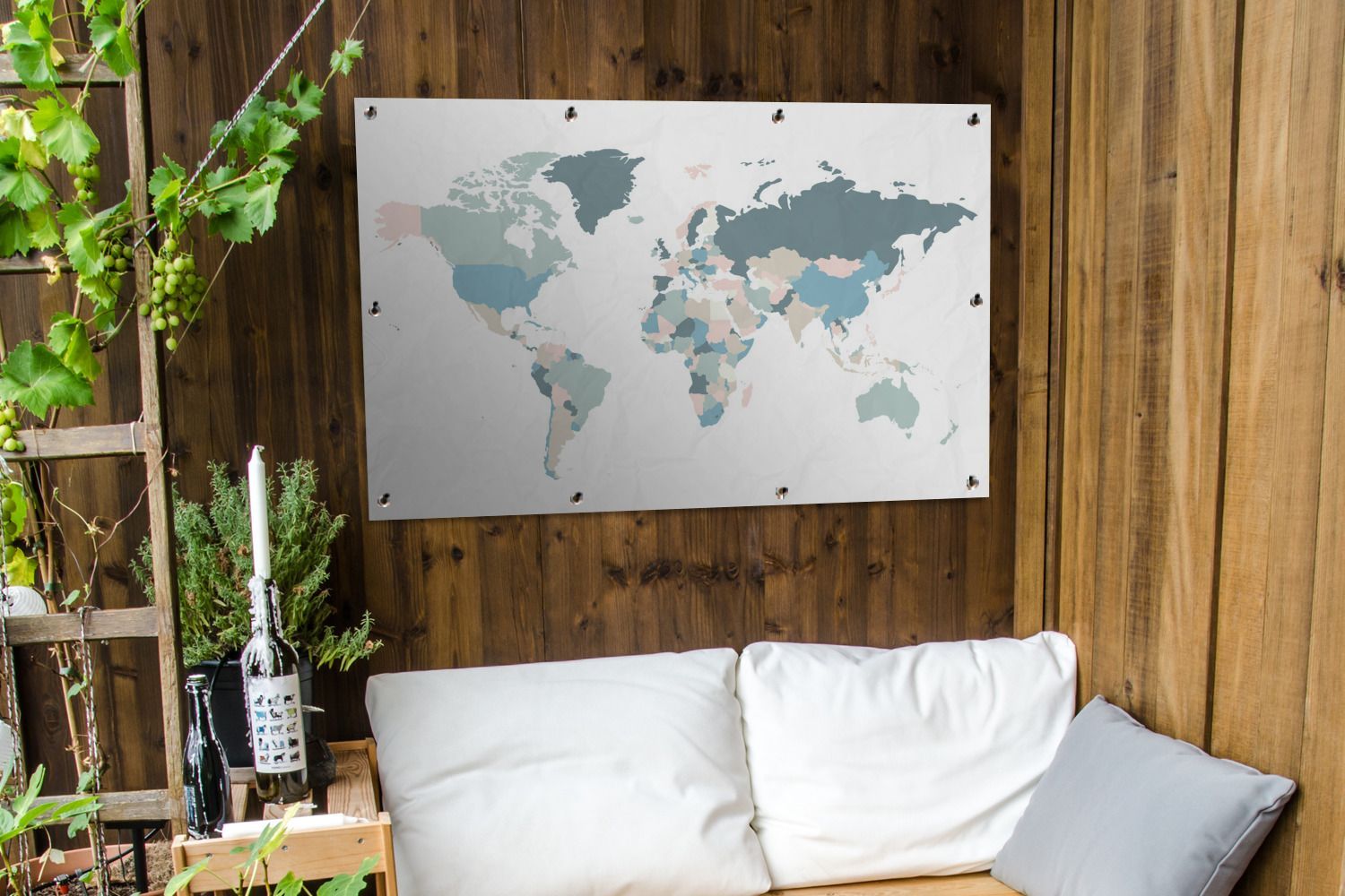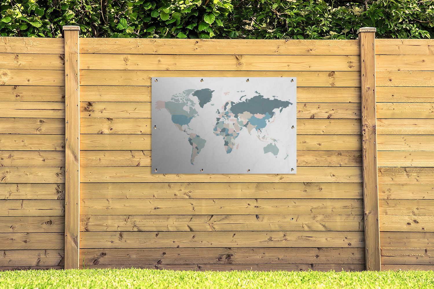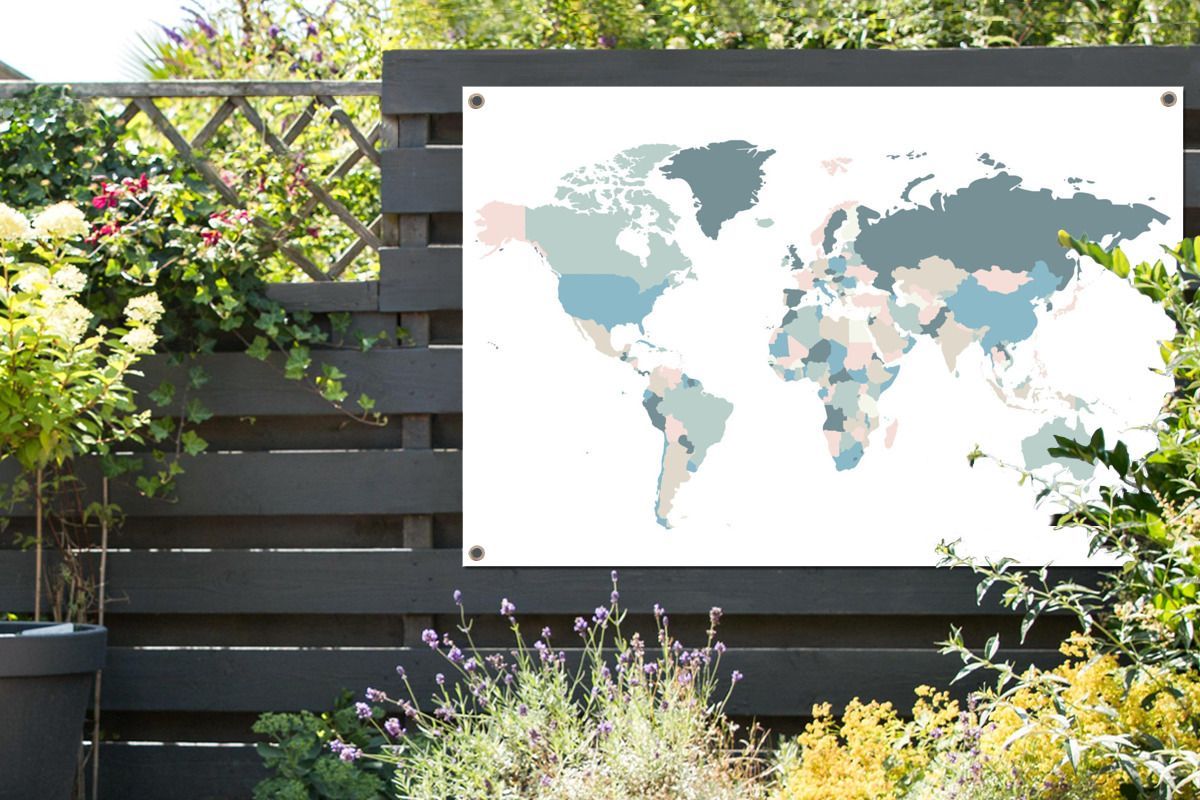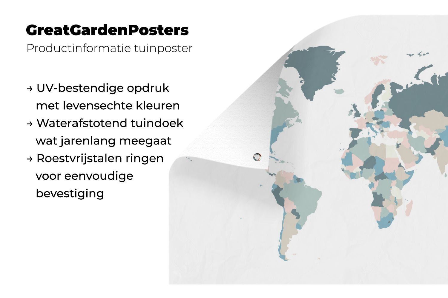 Gartenposter - 120x80 cm - Weltkarte - Einfach - Pastell (Gr. 120x80 cm)
