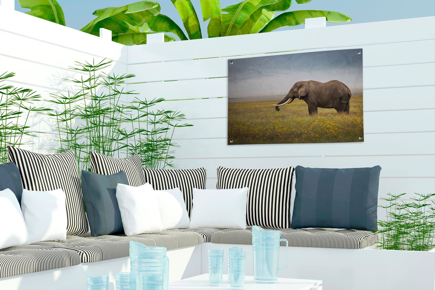• Gartenposter - 60x40 cm - Badender Elefant (Gr. 60x40 cm)