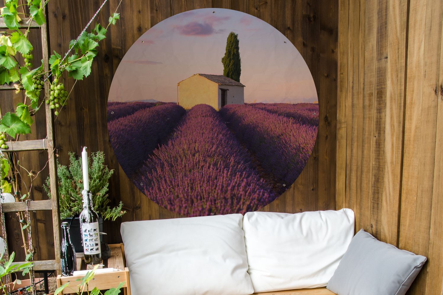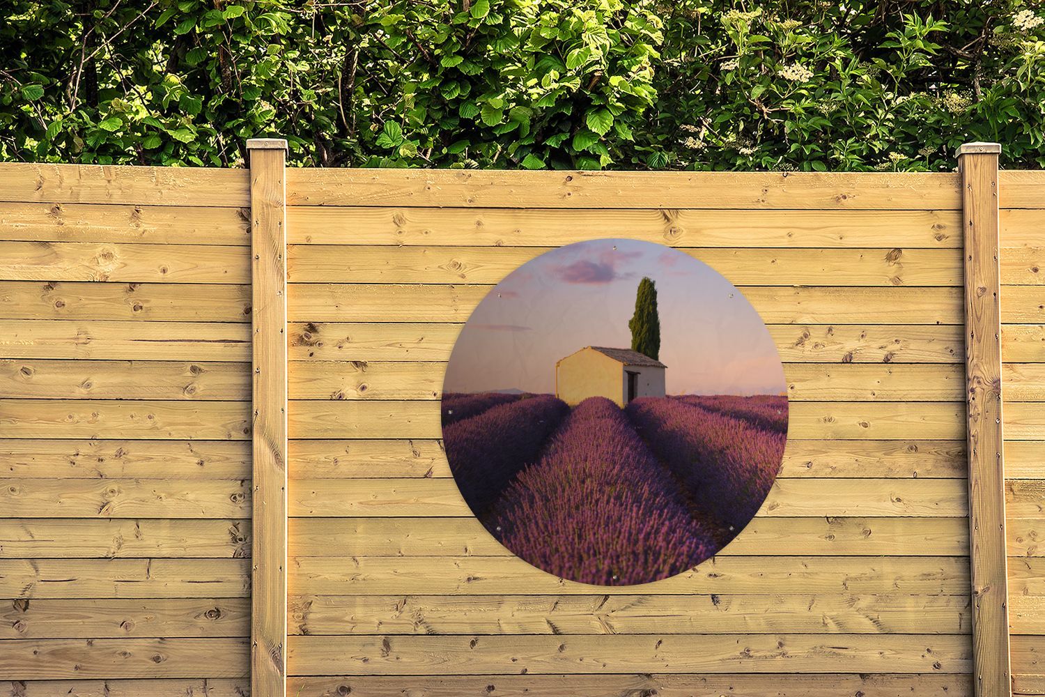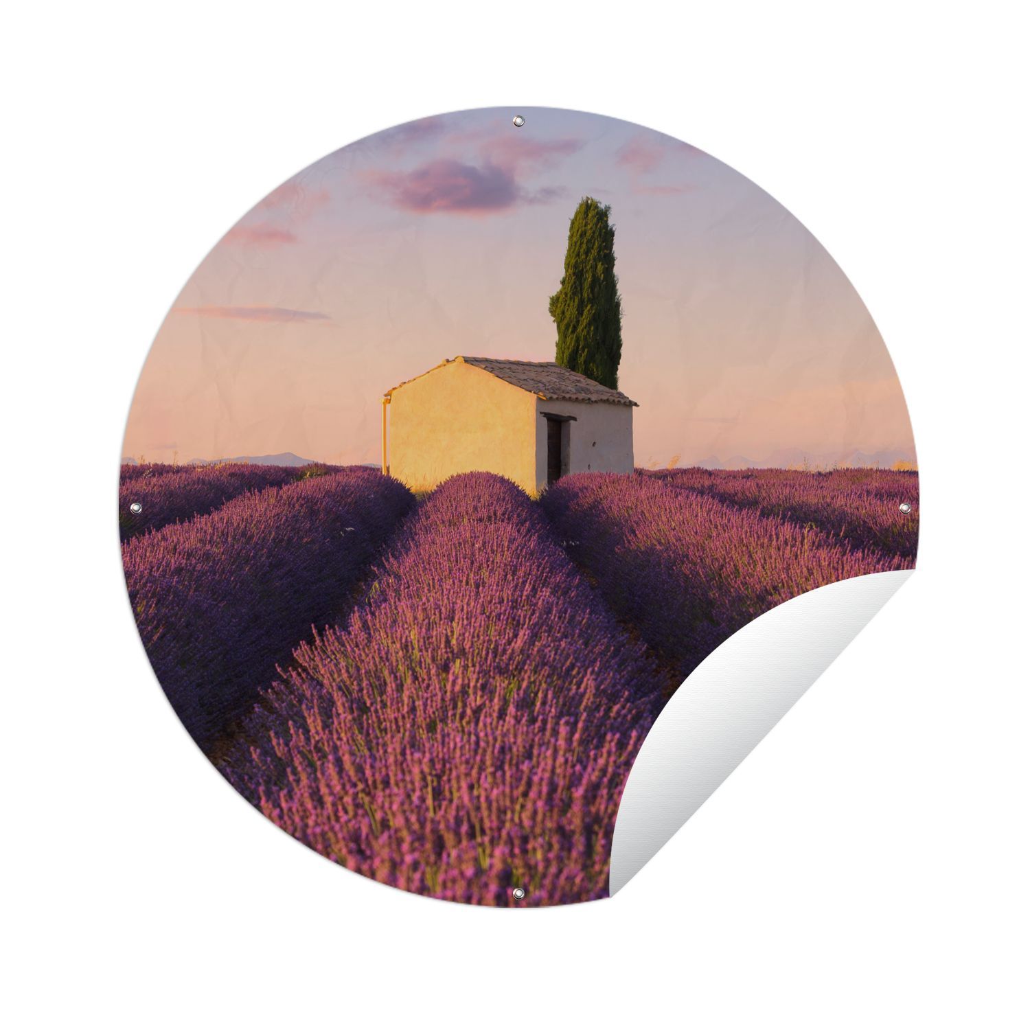 Gartenposter Rund - Reihen von lila Lavendel - Ø 90 cm - Gartendeko