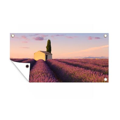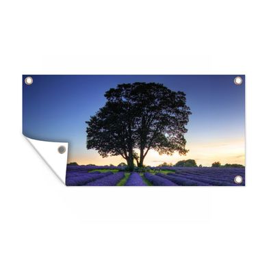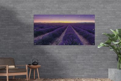 • Gartenposter - 80x40 cm - Lila Himmel über Reihen in einem Lavendelfeld