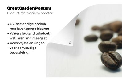 • Gartenposter - 180x120 cm - Tiefenfoto einer Reihe von Kaffeebohnen auf weißem Hinter
