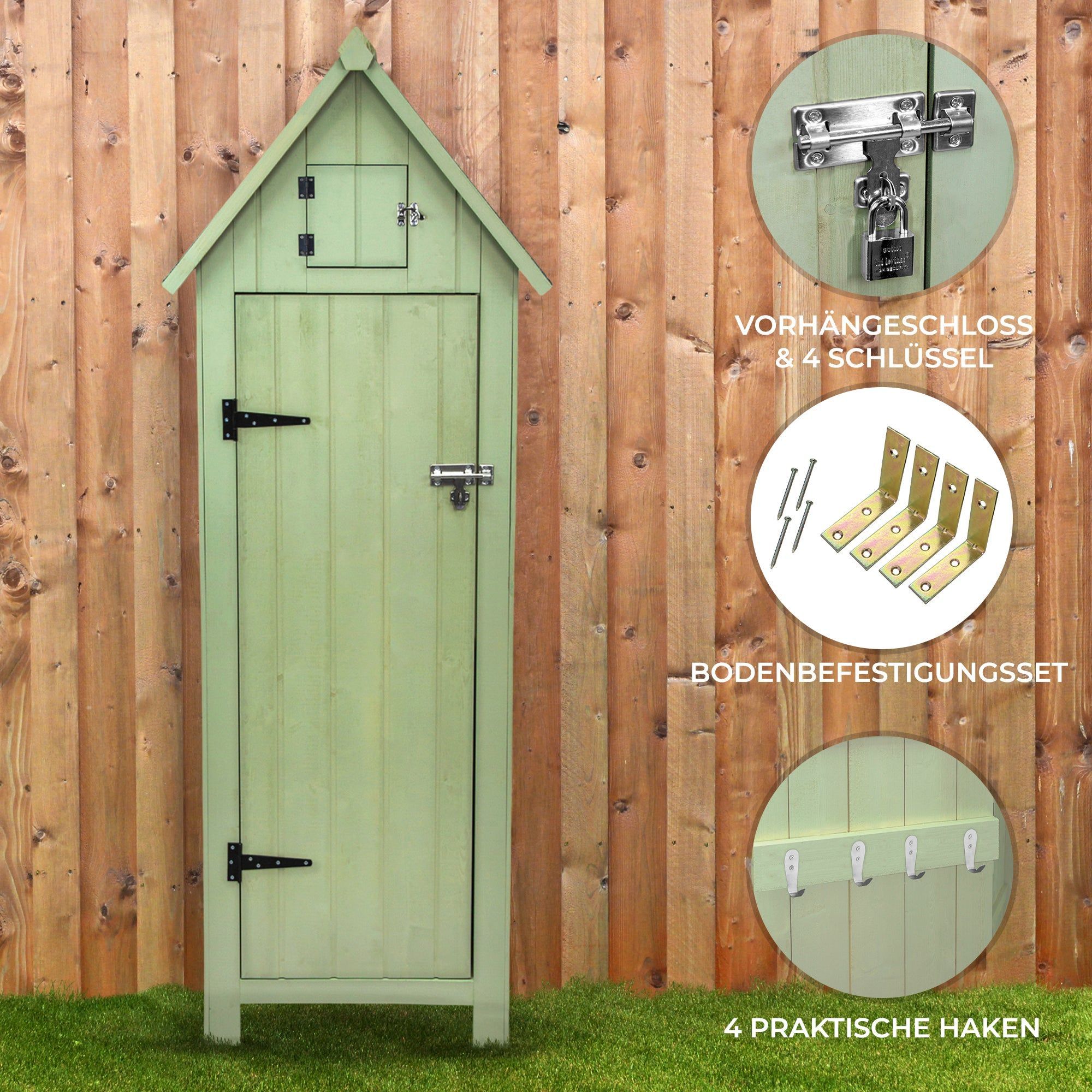 Gartenschrank aus Holz Werkzeugschrank Gartenhaus Wasserfest 3 Regale 4 Haken