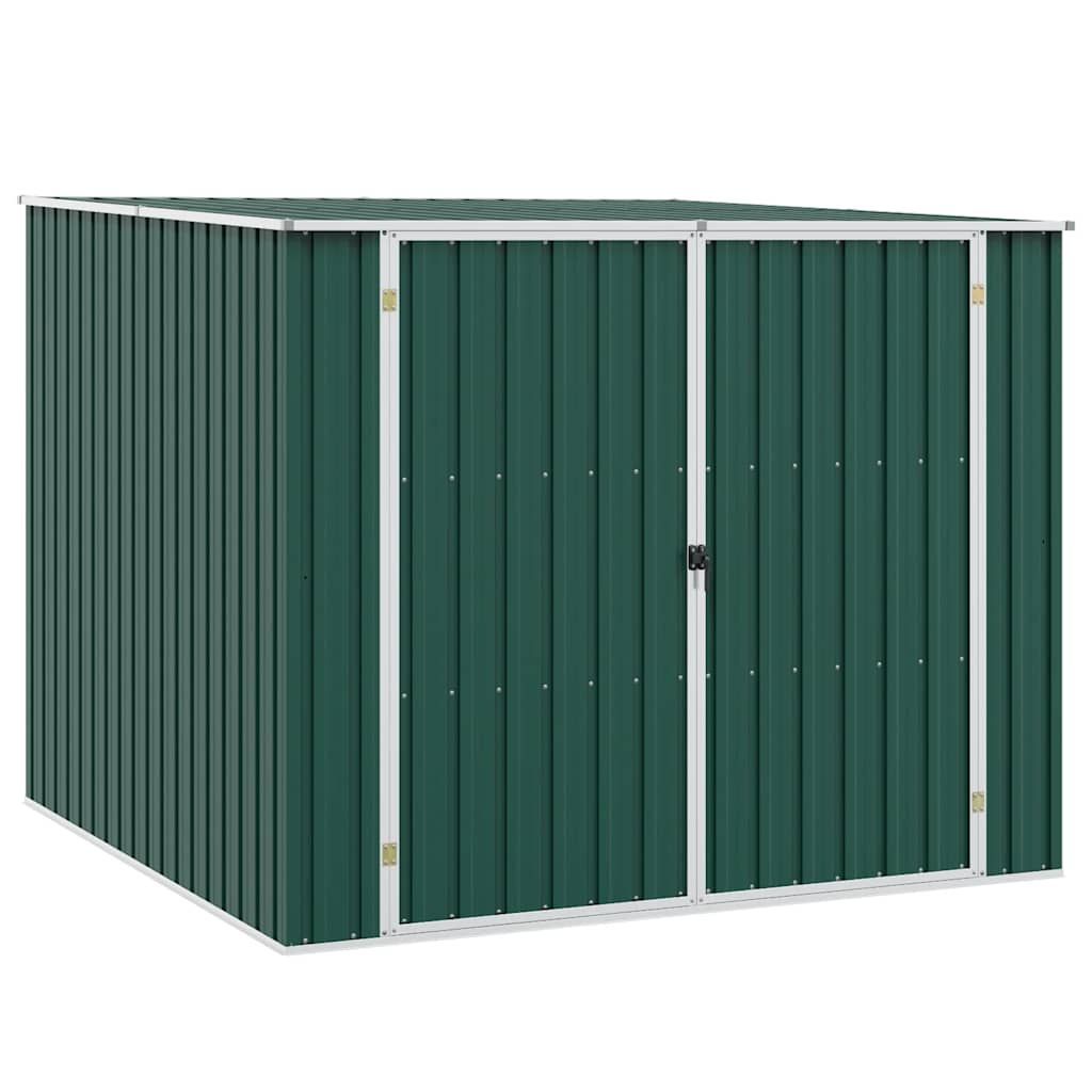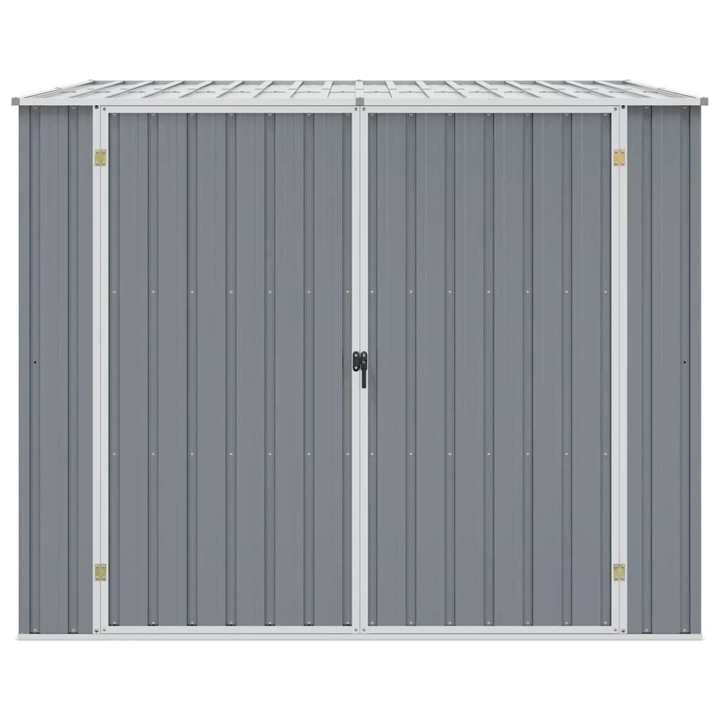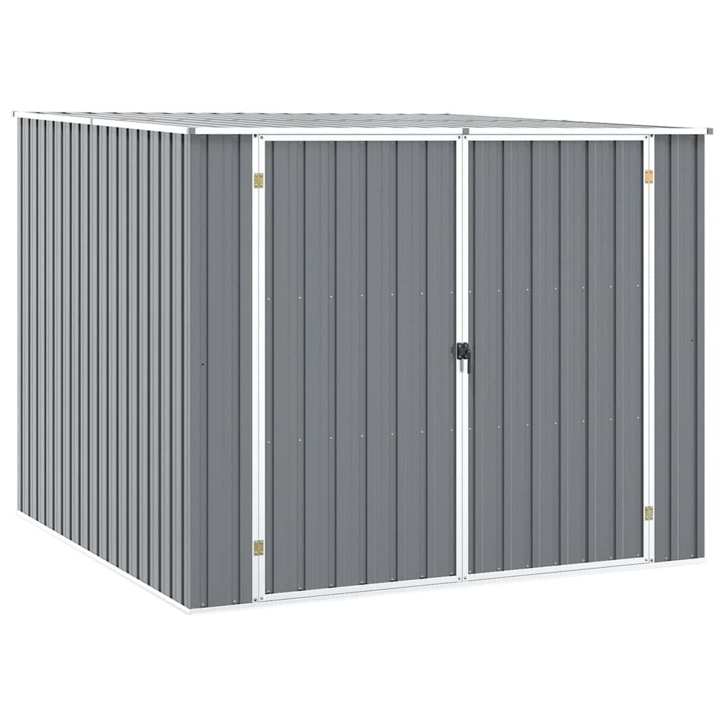 Gartenschuppen aus verzinktem Stahl mit Doppeltür und Schrägdach. Langlebig