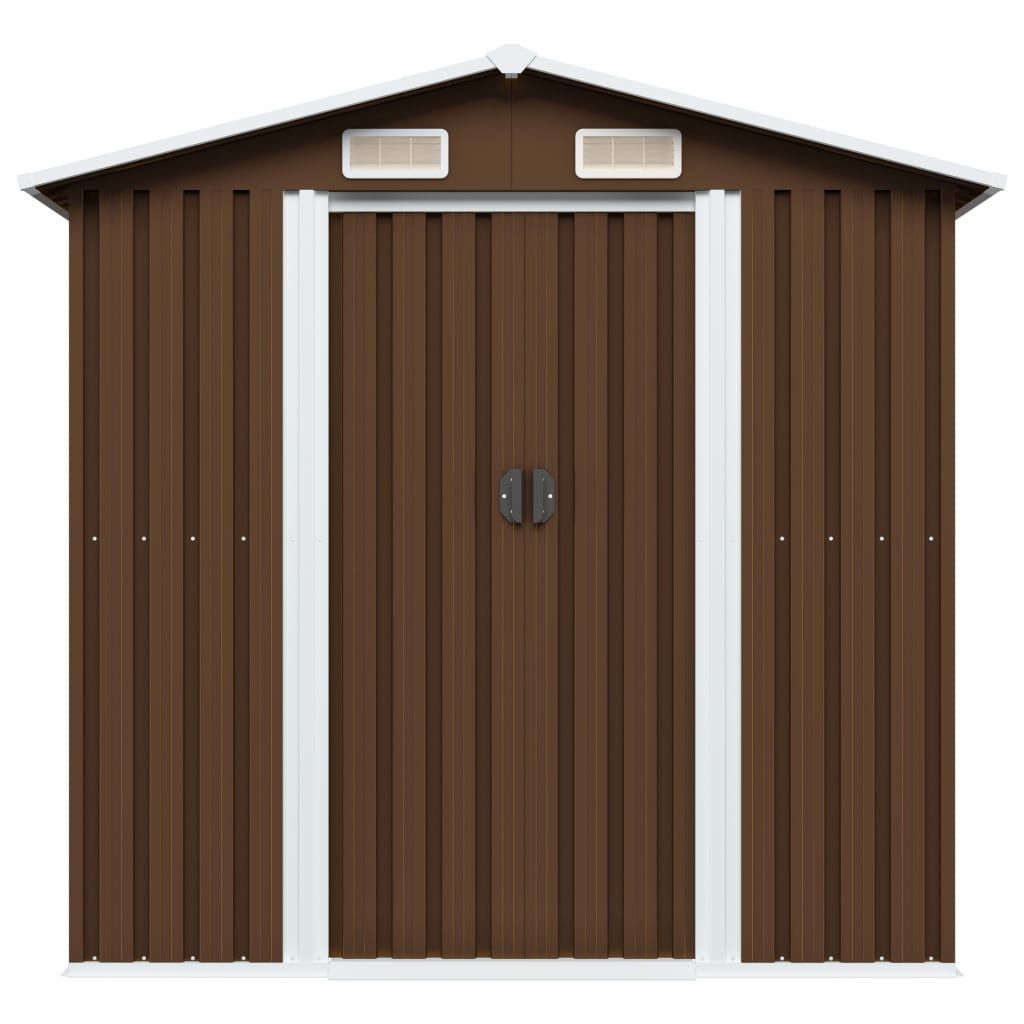 Gartenschuppen aus verzinktem Stahl mit Fundamentrahmen, Belüftung und Doppeltür