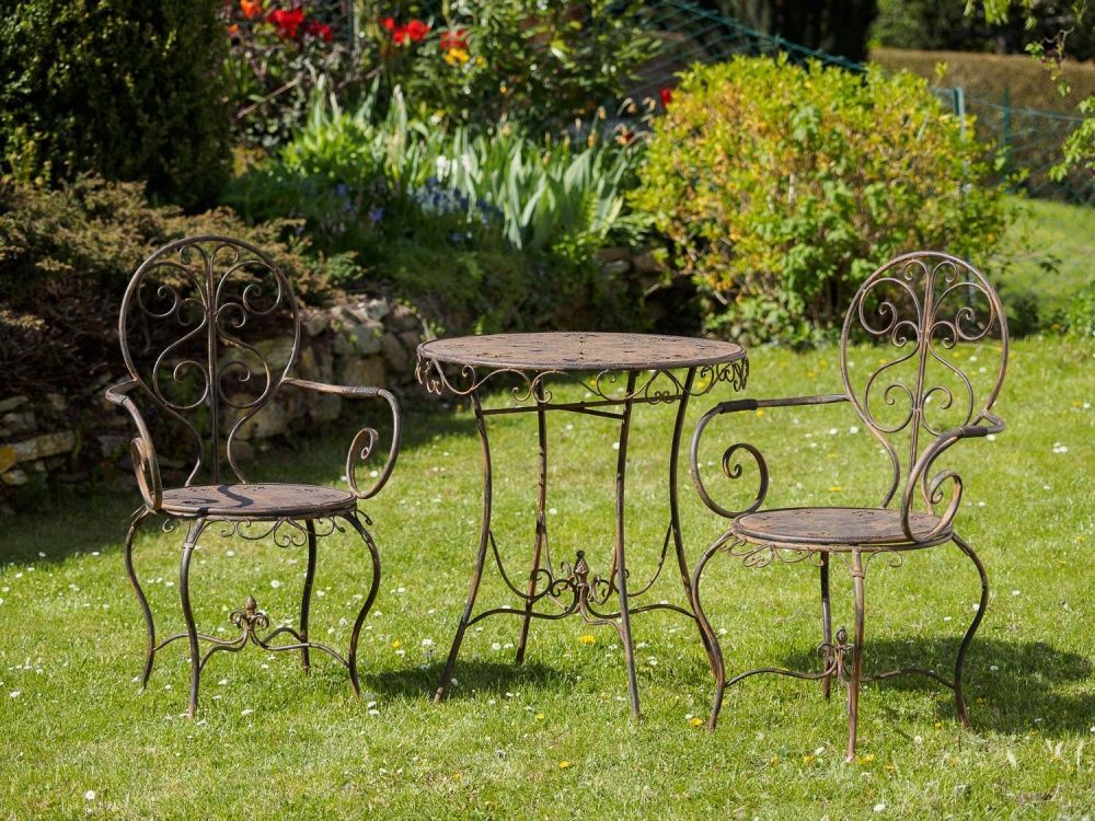 Gartenset Eisen Metall Garnitur Garten Möbel braun antik-Stil