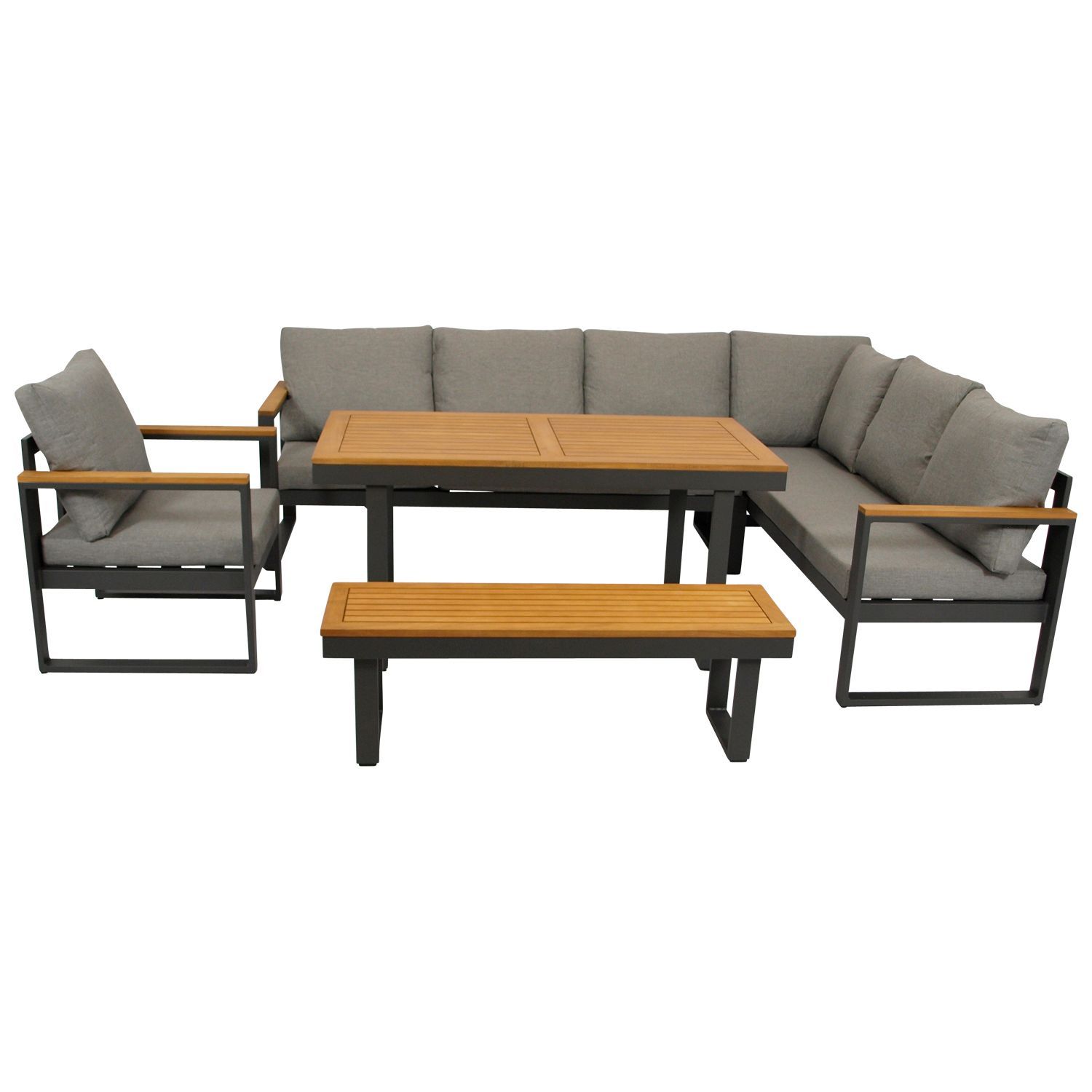Gartenset Lounge-Set Funktions Eckbank Set 4-teilig, Aluminium + Akazie, mit Polstern