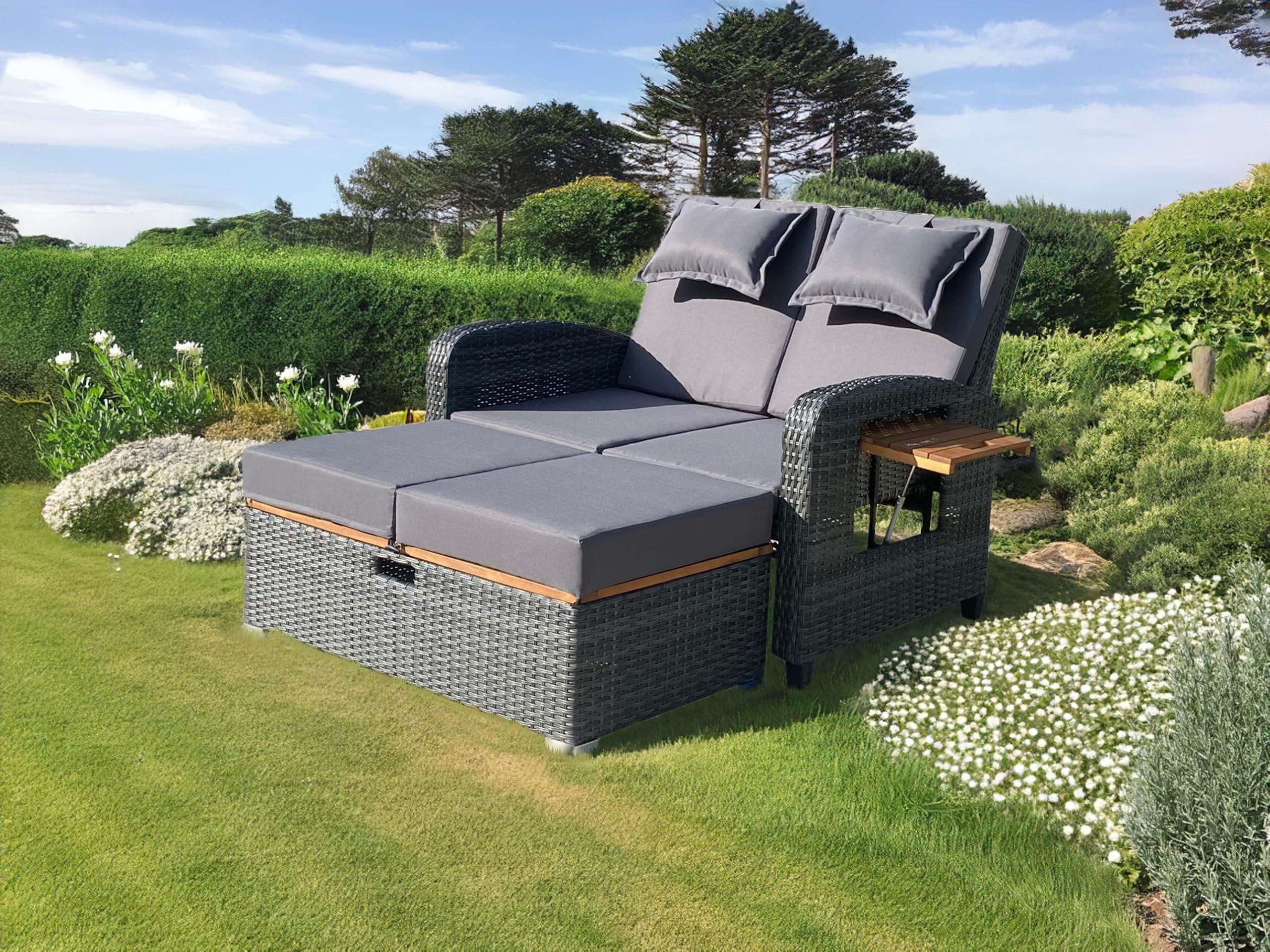 Gartensofa OLIVIA Akazie Anthrazit Gartenliege Sonnenliege