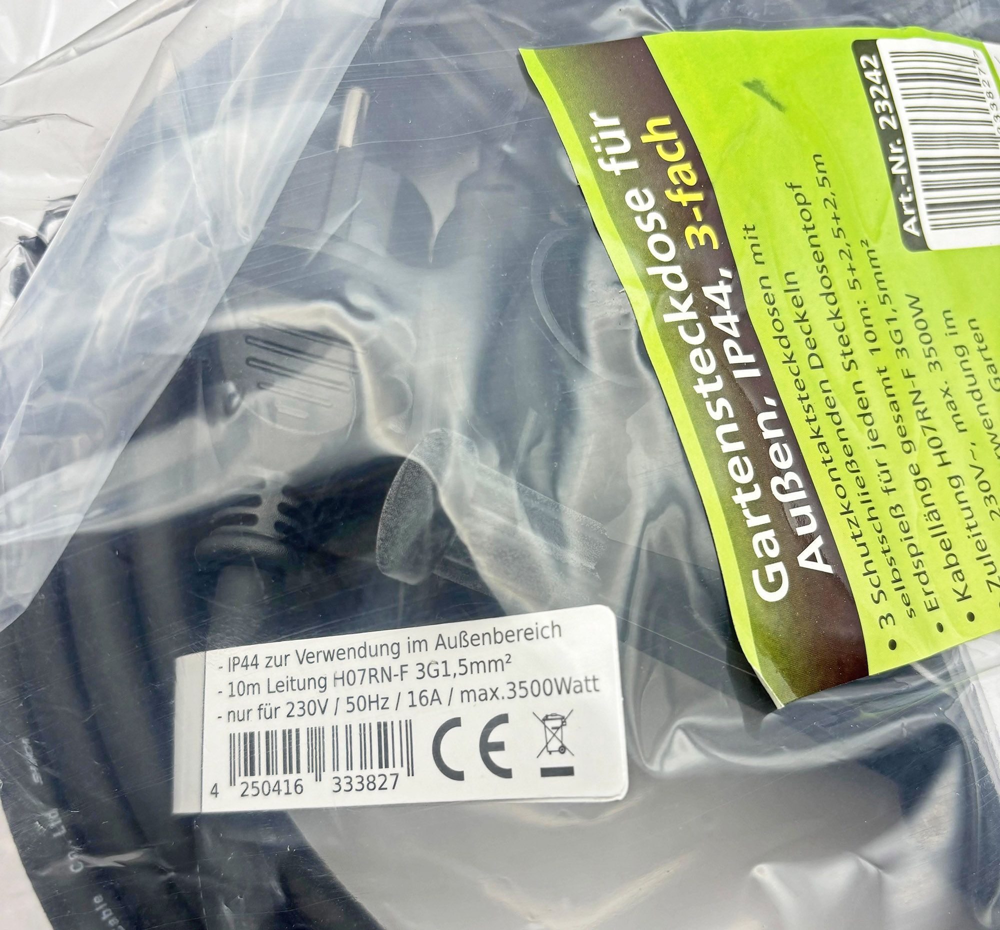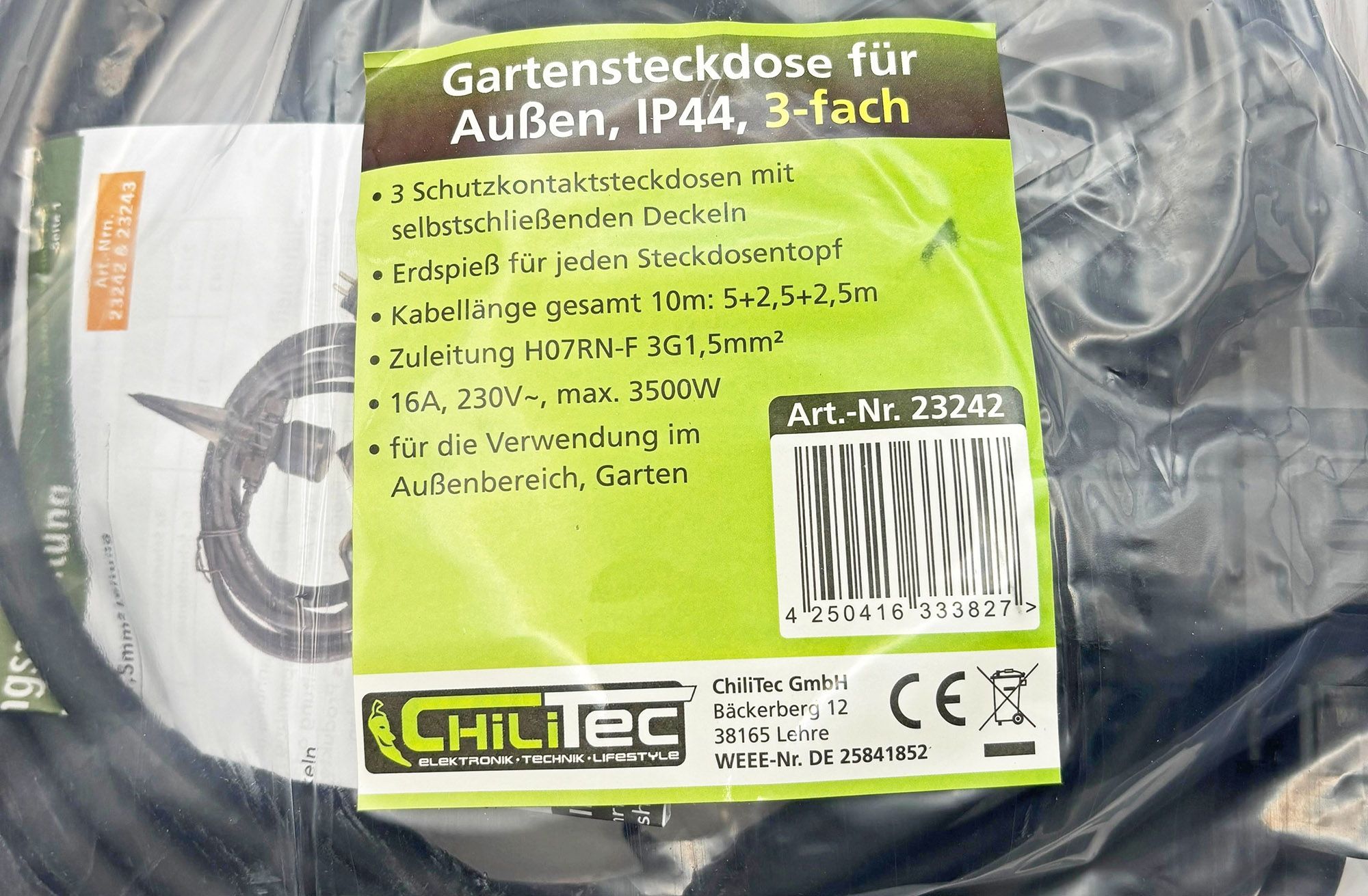 ChiliTec Gartensteckdose für Außen, IP44, 3-fach Einzelsteckdosen, 5 + 2,5 + 2,5m