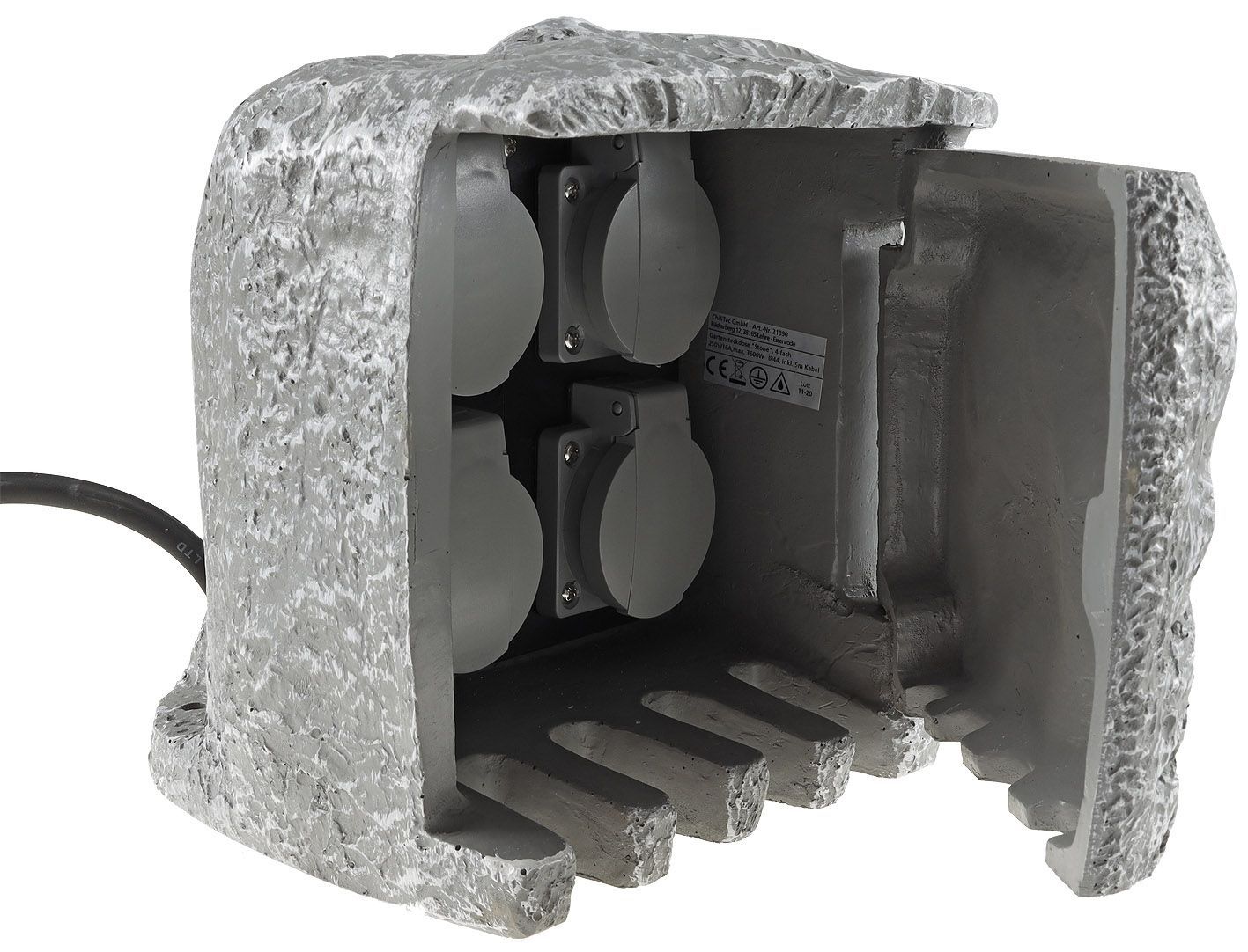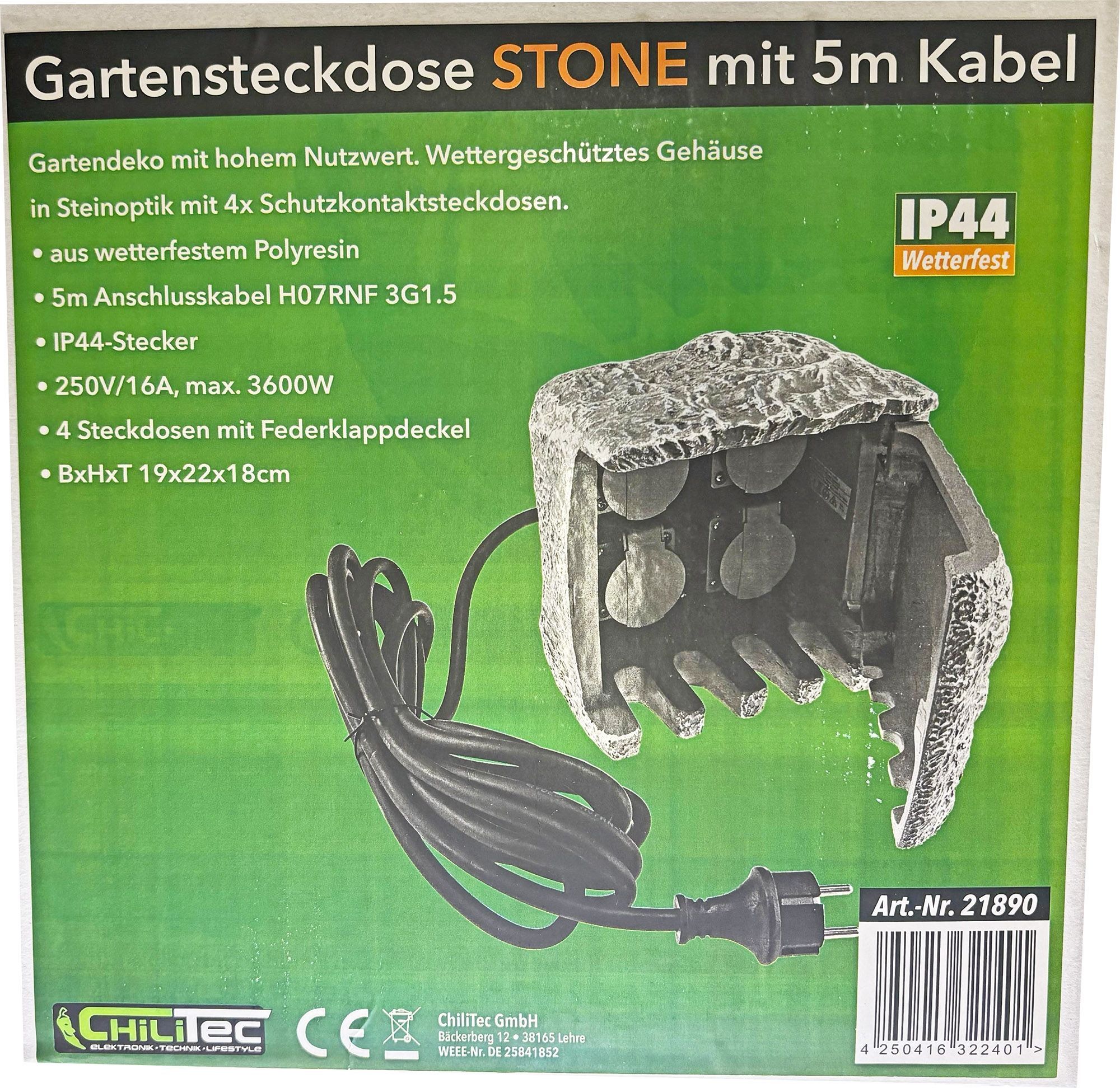ChiliTec Gartensteckdose "Stone", 4-fach 250V/16A, IP44, inkl. 5m Zuleitung