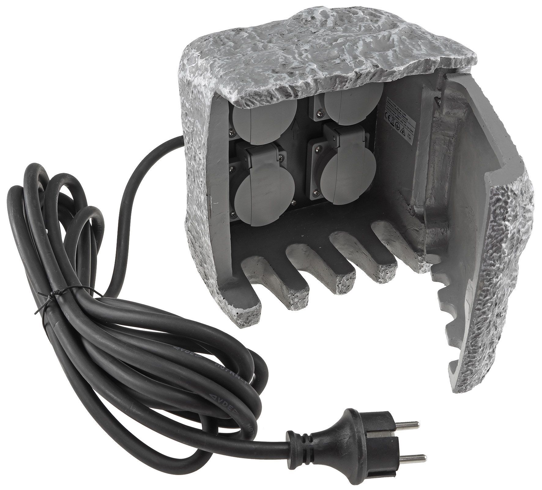 ChiliTec Gartensteckdose "Stone", 4-fach 250V/16A, IP44, inkl. 5m Zuleitung