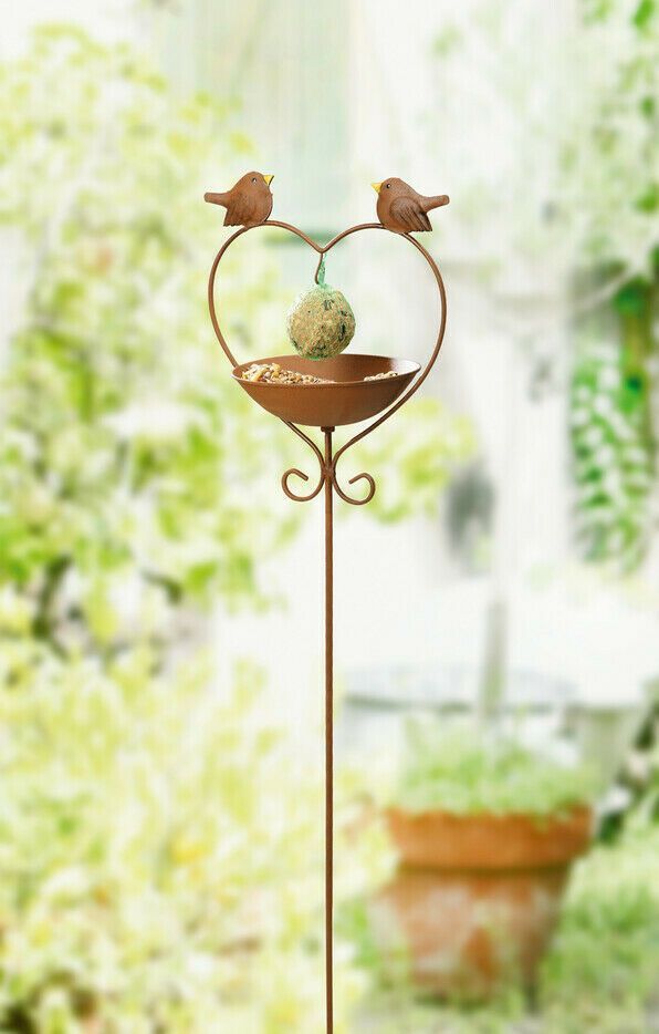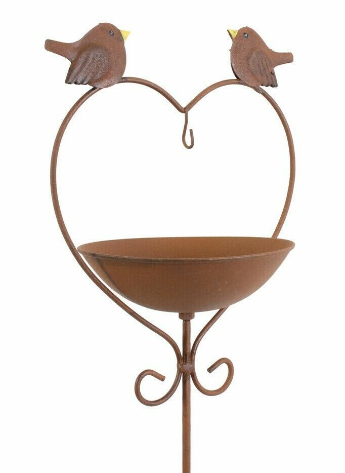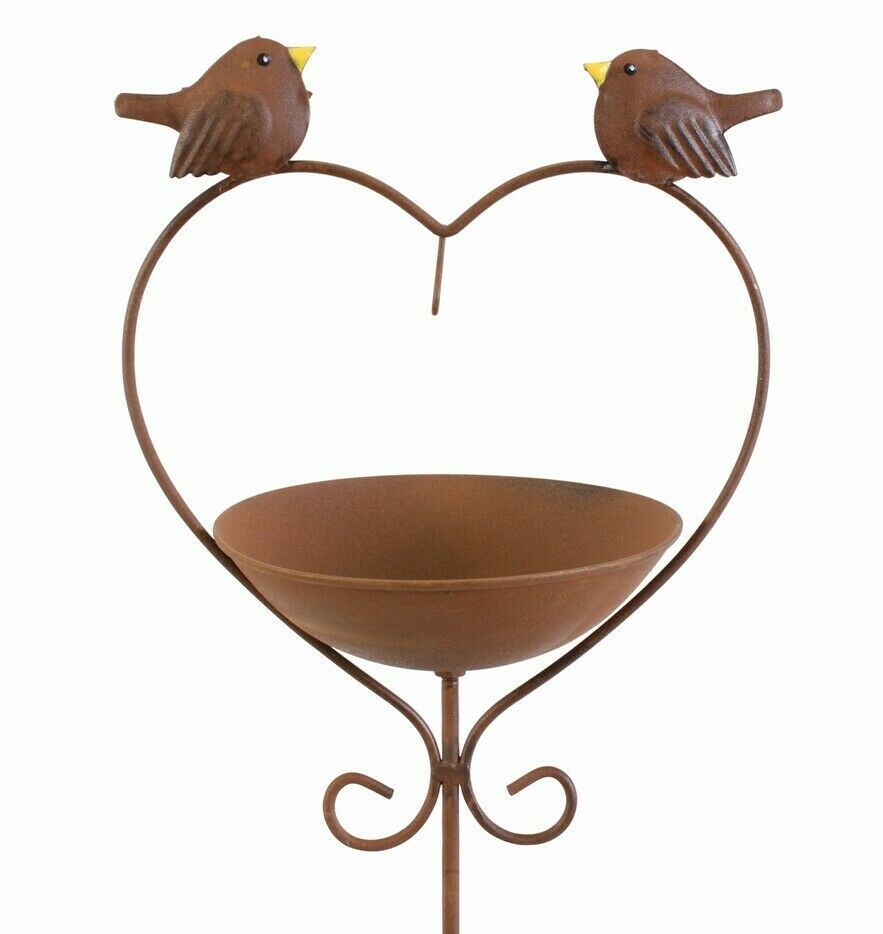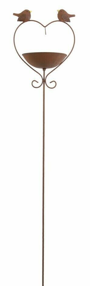 Gartenstecker Futterstation Tränke Rostdesign Herz Deko Garten Terrasse H. 115 cm