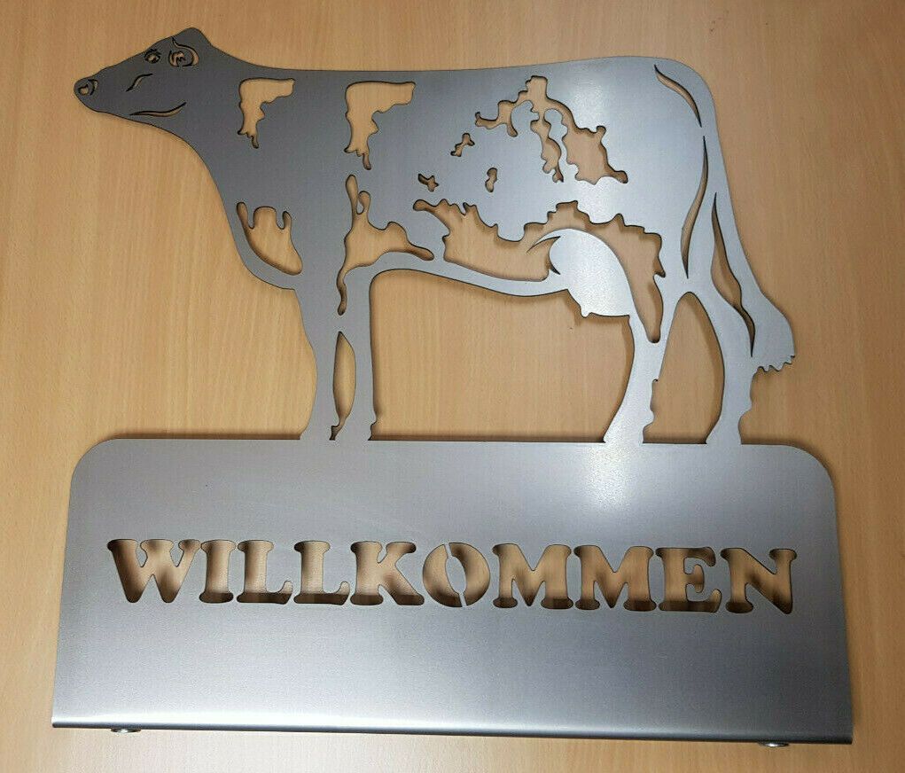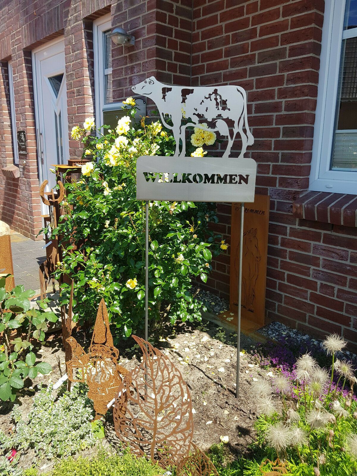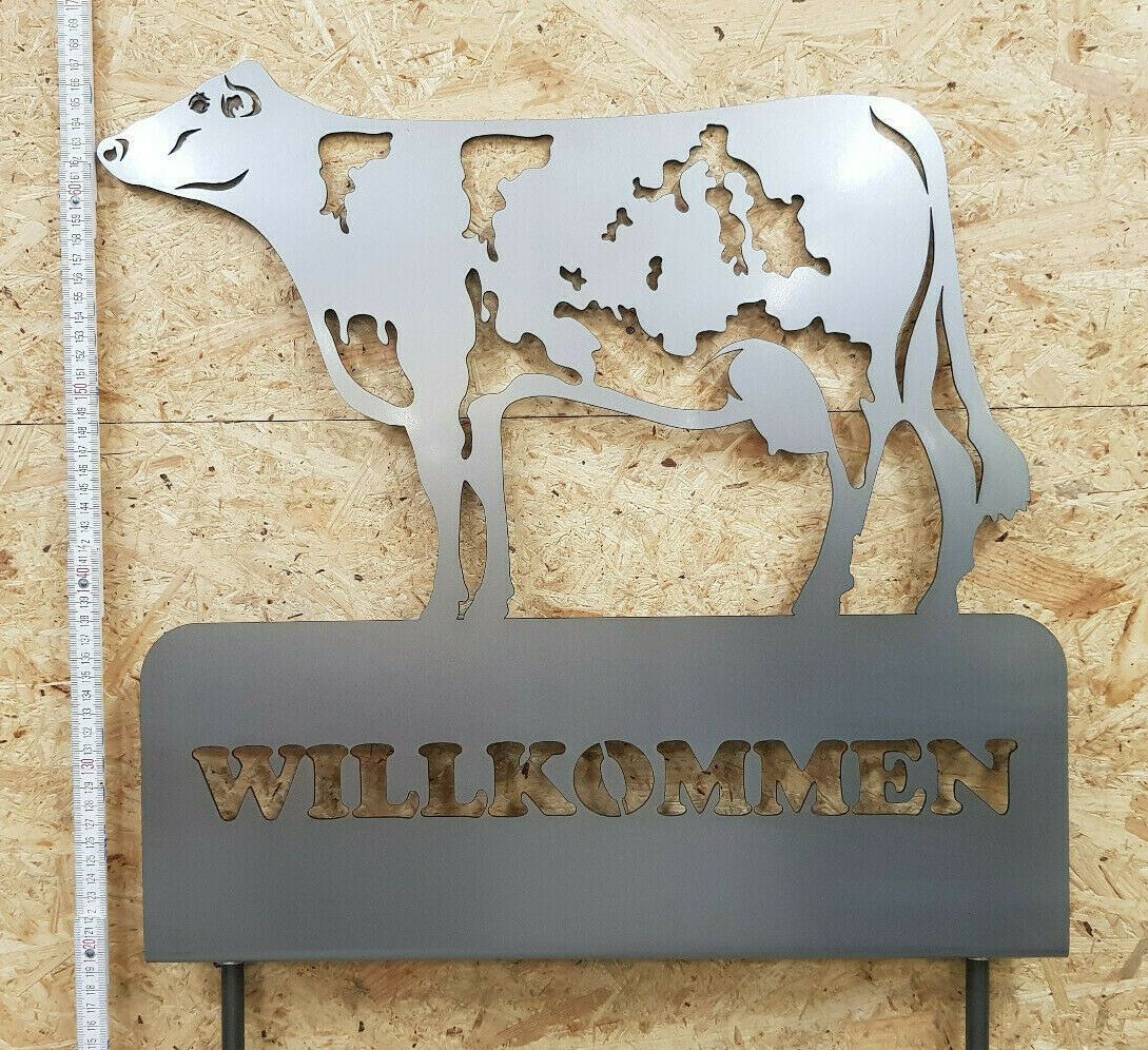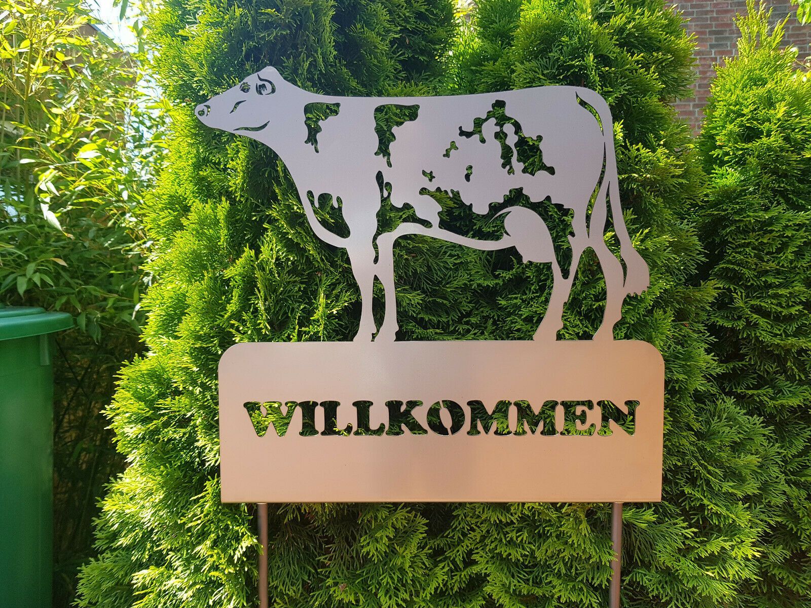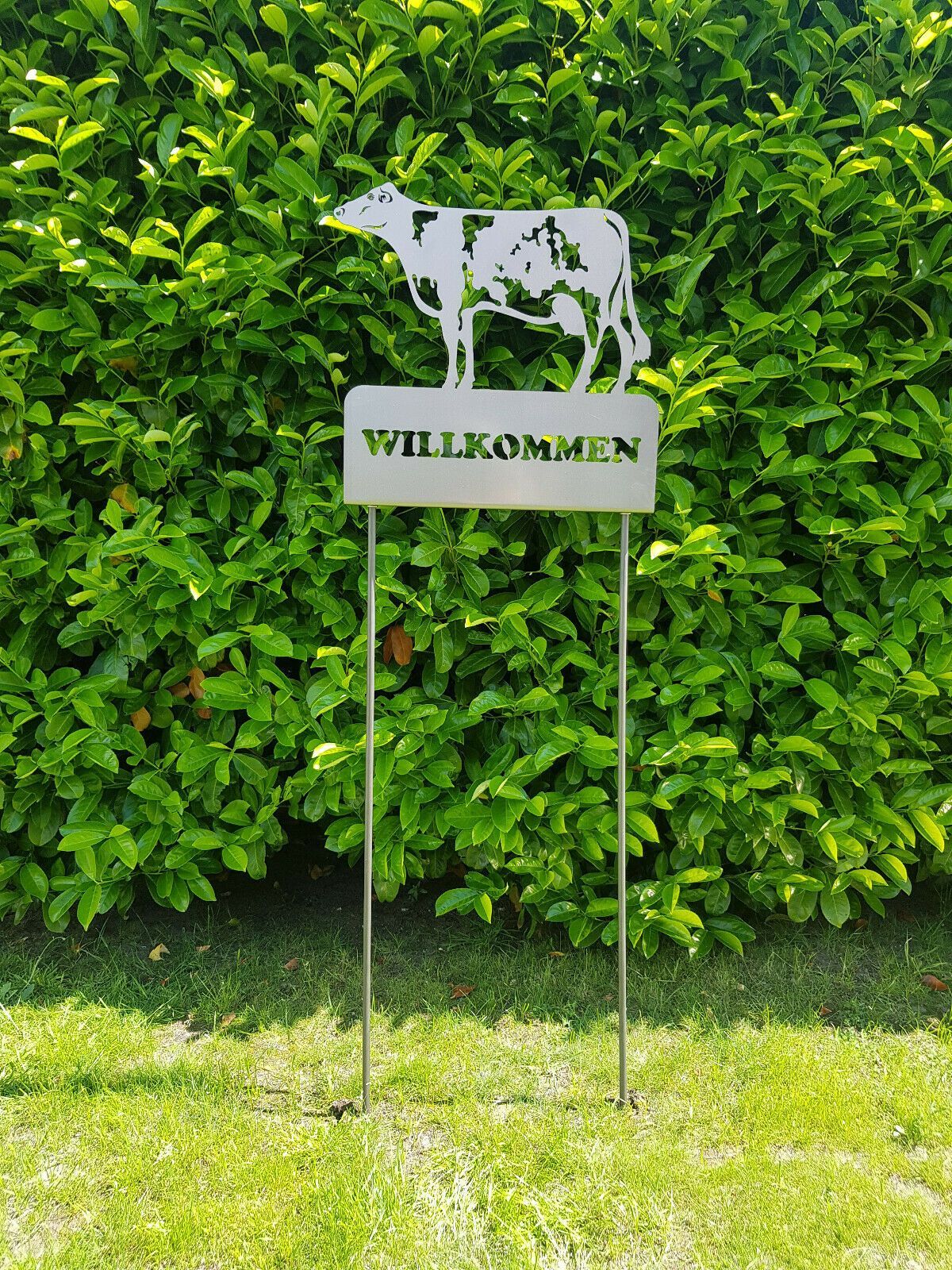 Gartenstecker KUH "Willkommen" Höhe 165 cm aus 2mm Stahlblech