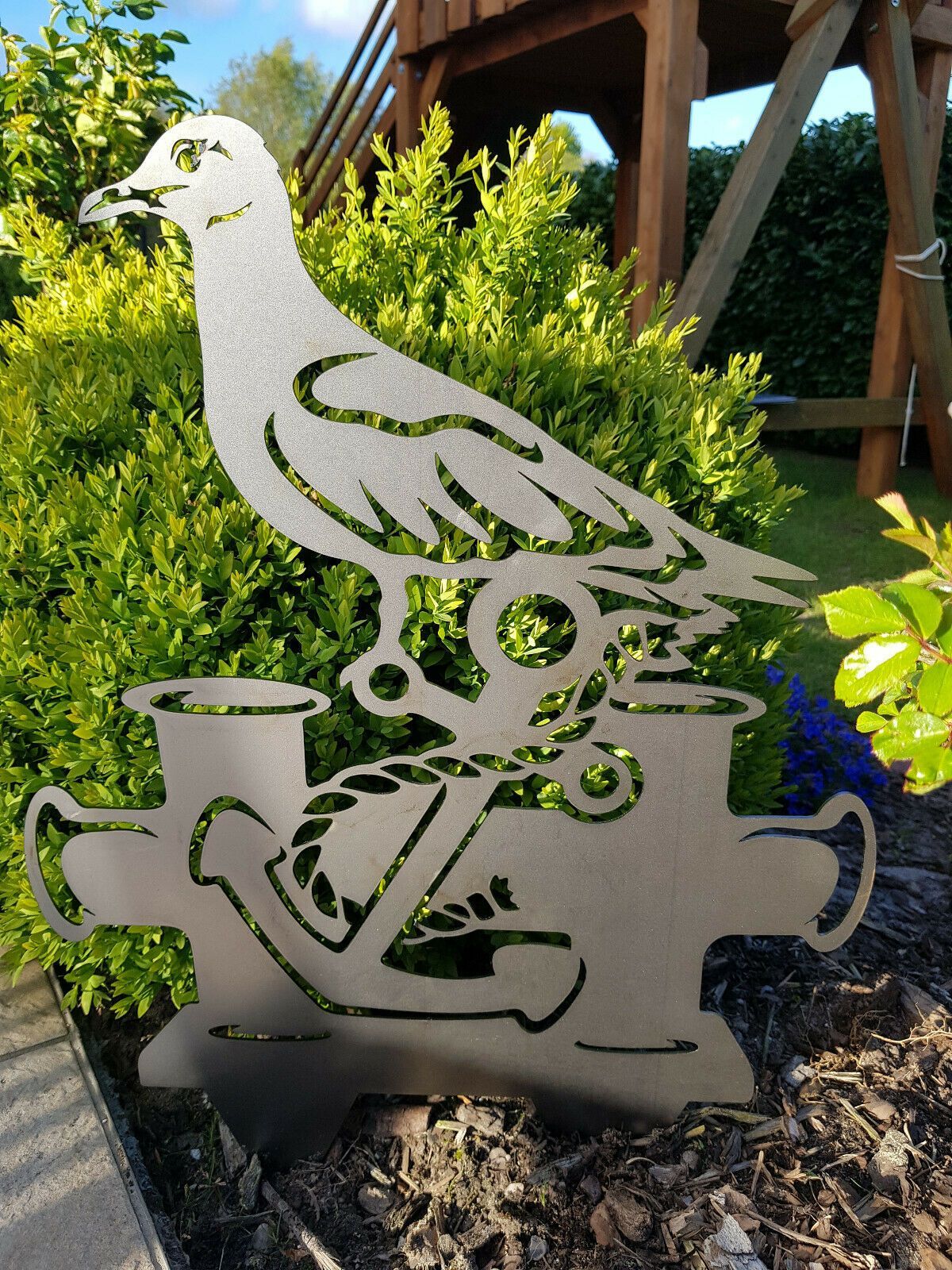 Hallo, hier könnt Ihr unseren Gartenstecker Möwe aus 2mm dickem Stahlblech erwerben. Maße : Höhe ca. 50 cm Breite ca. 40 cm Der Stecker wird in blank geliefert und entwickelt im Aussenbereich innerhalb kurzer Zeit eine schöne Rostschicht. Handarbeit mit Lasertechnik. Jeder Artikel wird mit viel Sorg