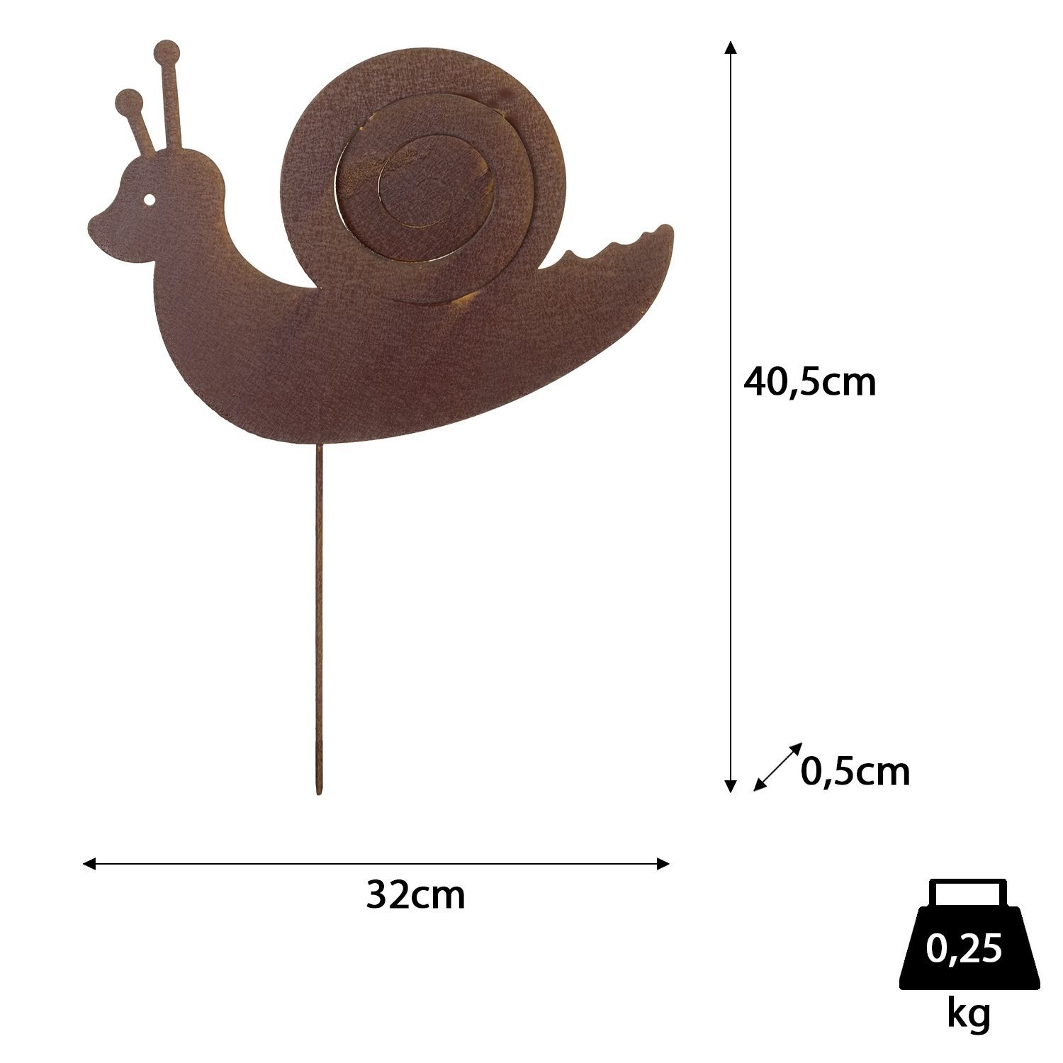 Gartenstecker Schnecke aus Metall in Rostoptik 32 x 0,5 x 40,5 cm - Dekostecker