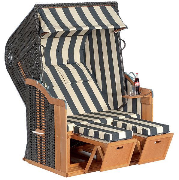SunnySmart Gartenstrandkorb Rustikal 250 PLUS 2-Sitzer, Halbliegemodell anthrazit
