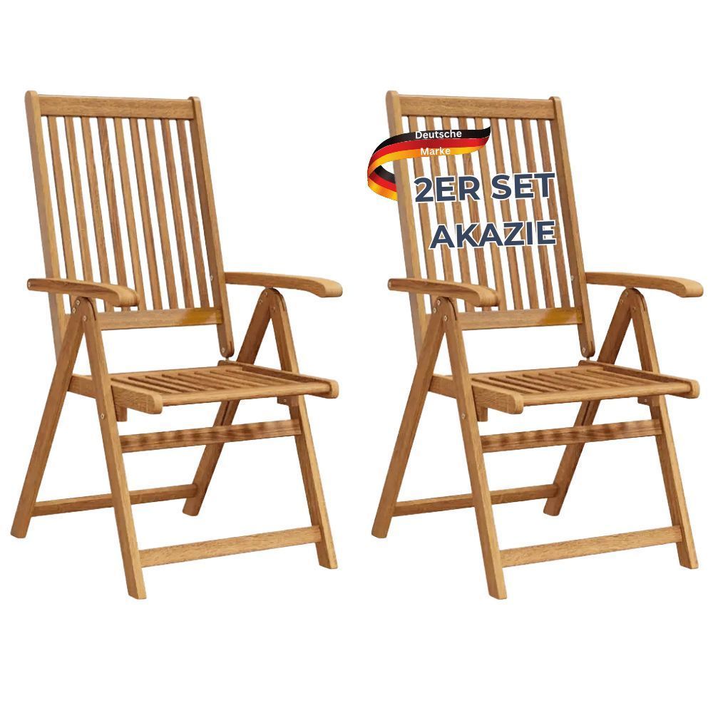 Gartenstühle COLLI 2er Set Klappbar Akazie Massivholz Braun Gartenstuhl Holz