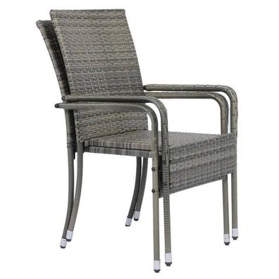 • 2er-Set Poly-Rattan Stuhl HWC-G19, Balkonstuhl Gartenstuhl, stapelbar