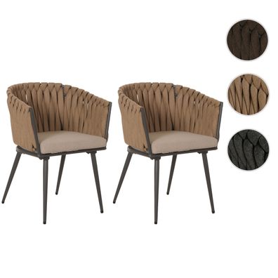 • 2er-Set Aluminium-Gartenstuhl HWC-O16, Outdoor Stuhl, Olefin Seilgeflecht Rope