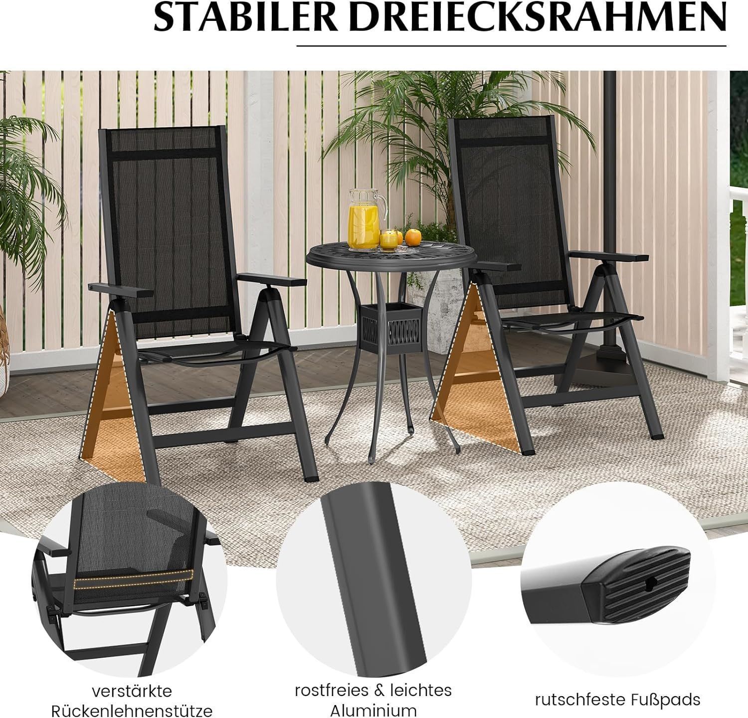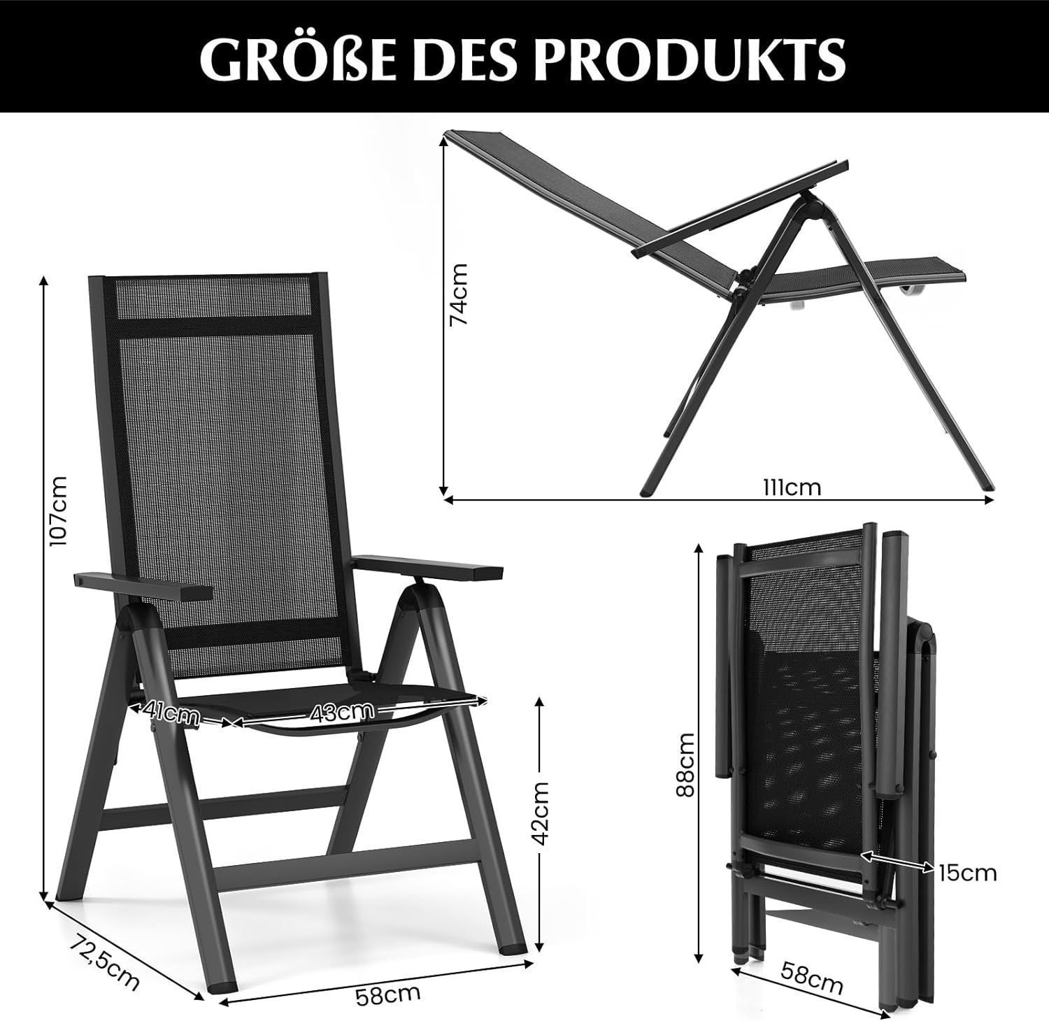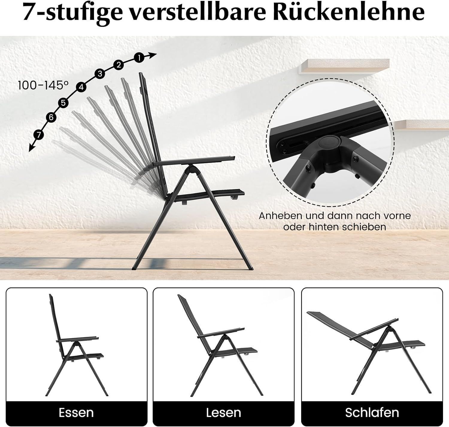Gartenstuhl, wetterfester Klappstuhl mit 7-Fach Verstellbarer Rückenlehne, klappbare