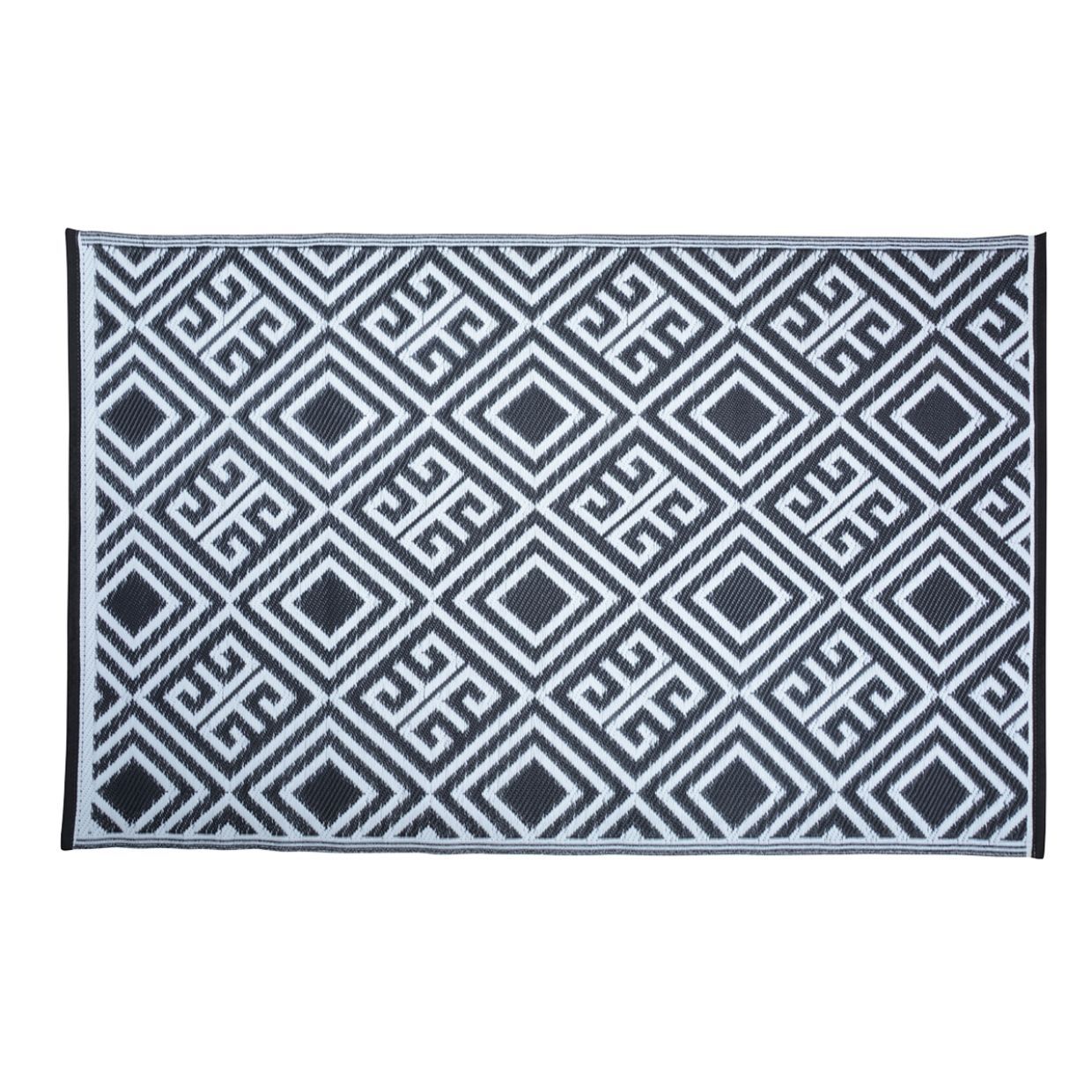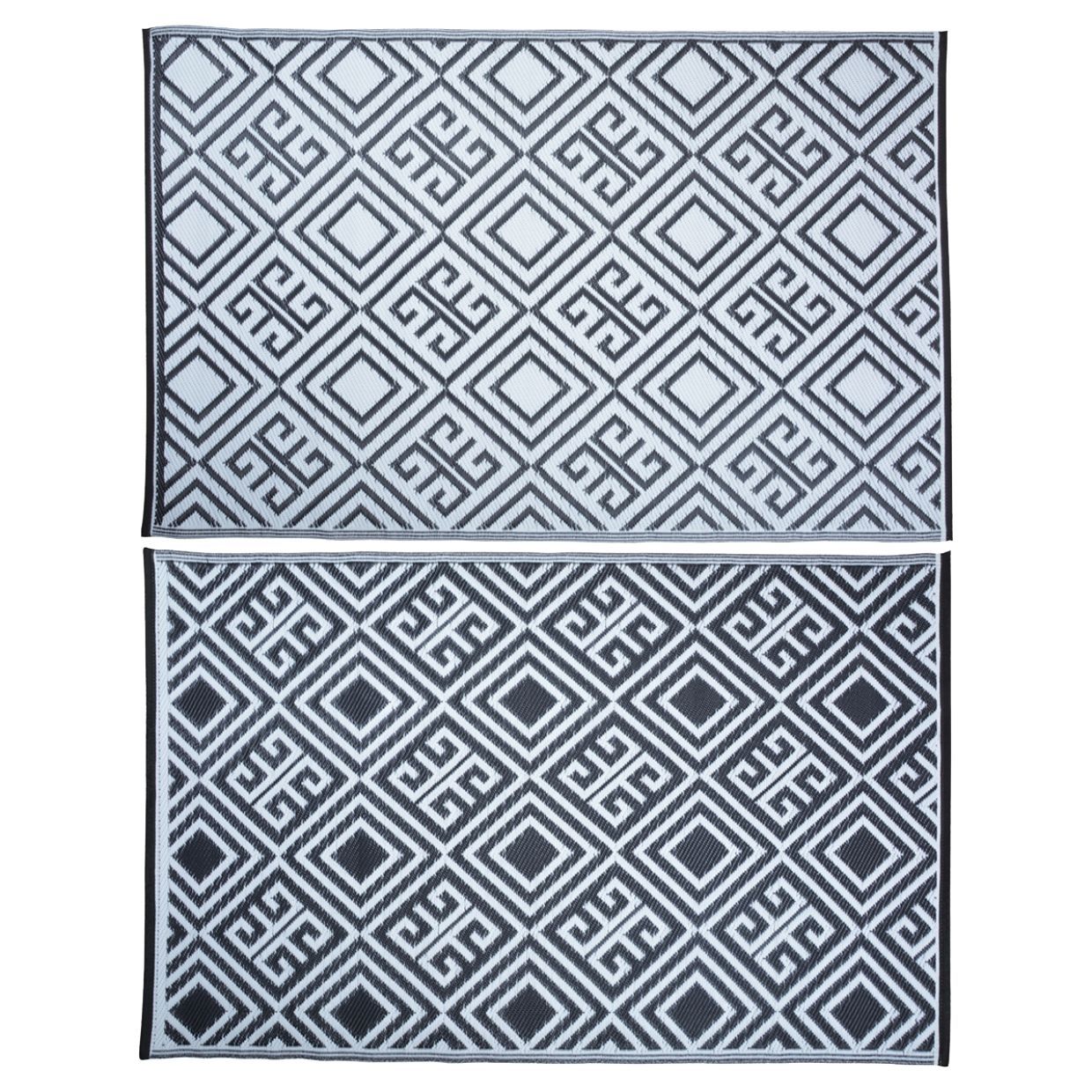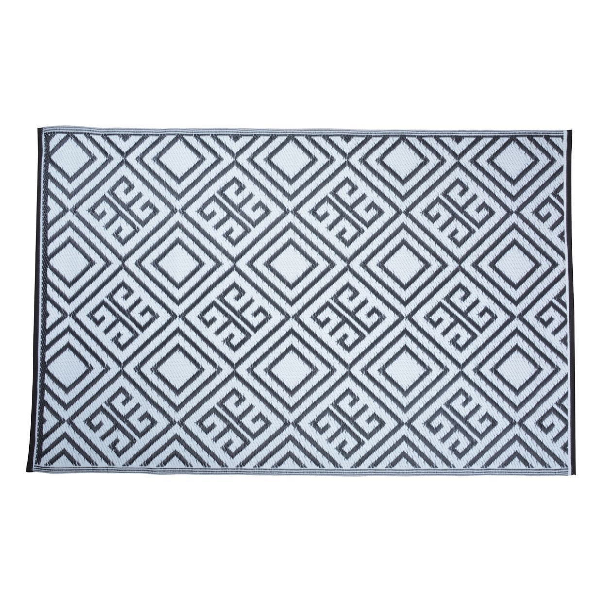 Esschert Design Gartenteppich Outdoor Indoor Teppich Balkon Terrasse Schwarz Weiß 120 x 186 cm