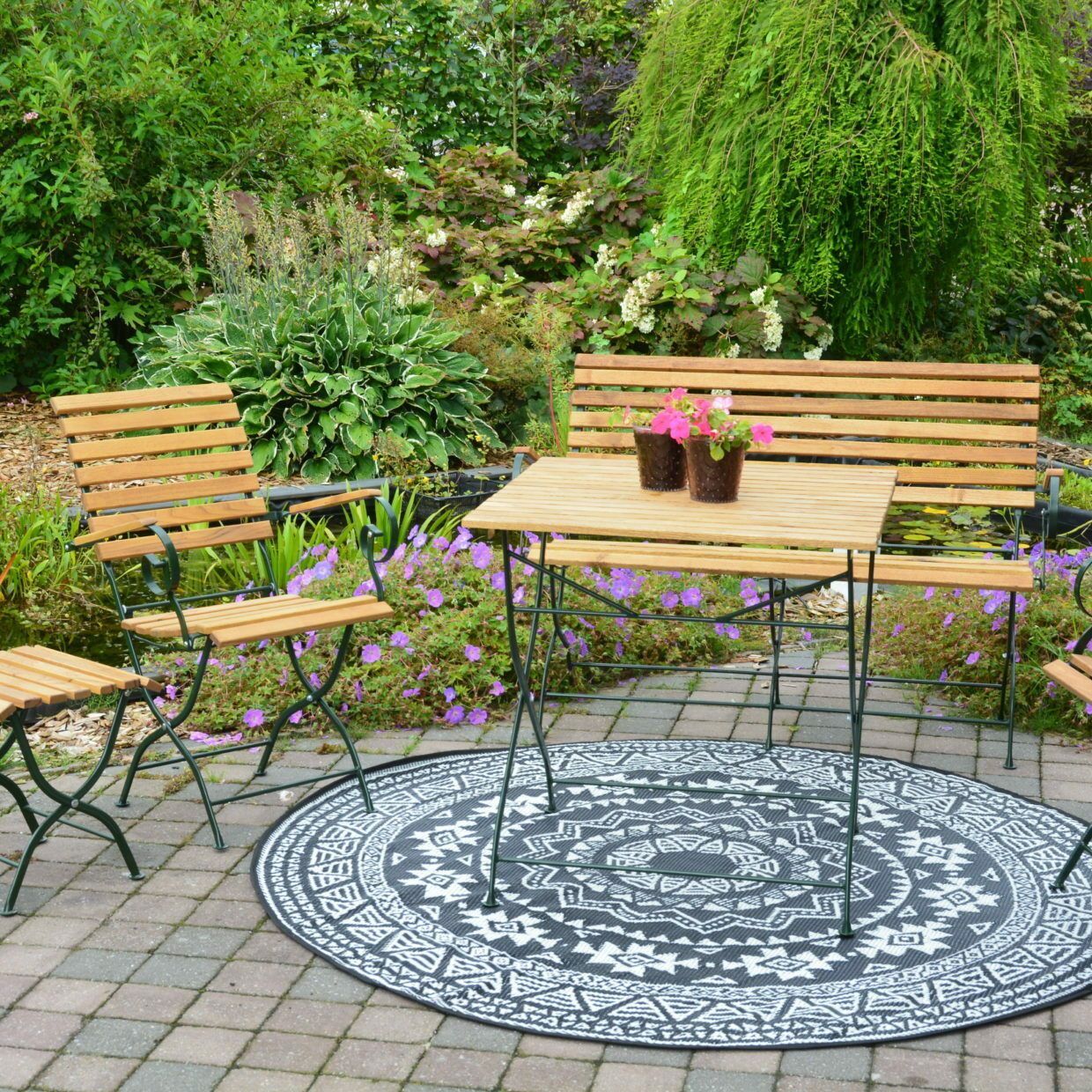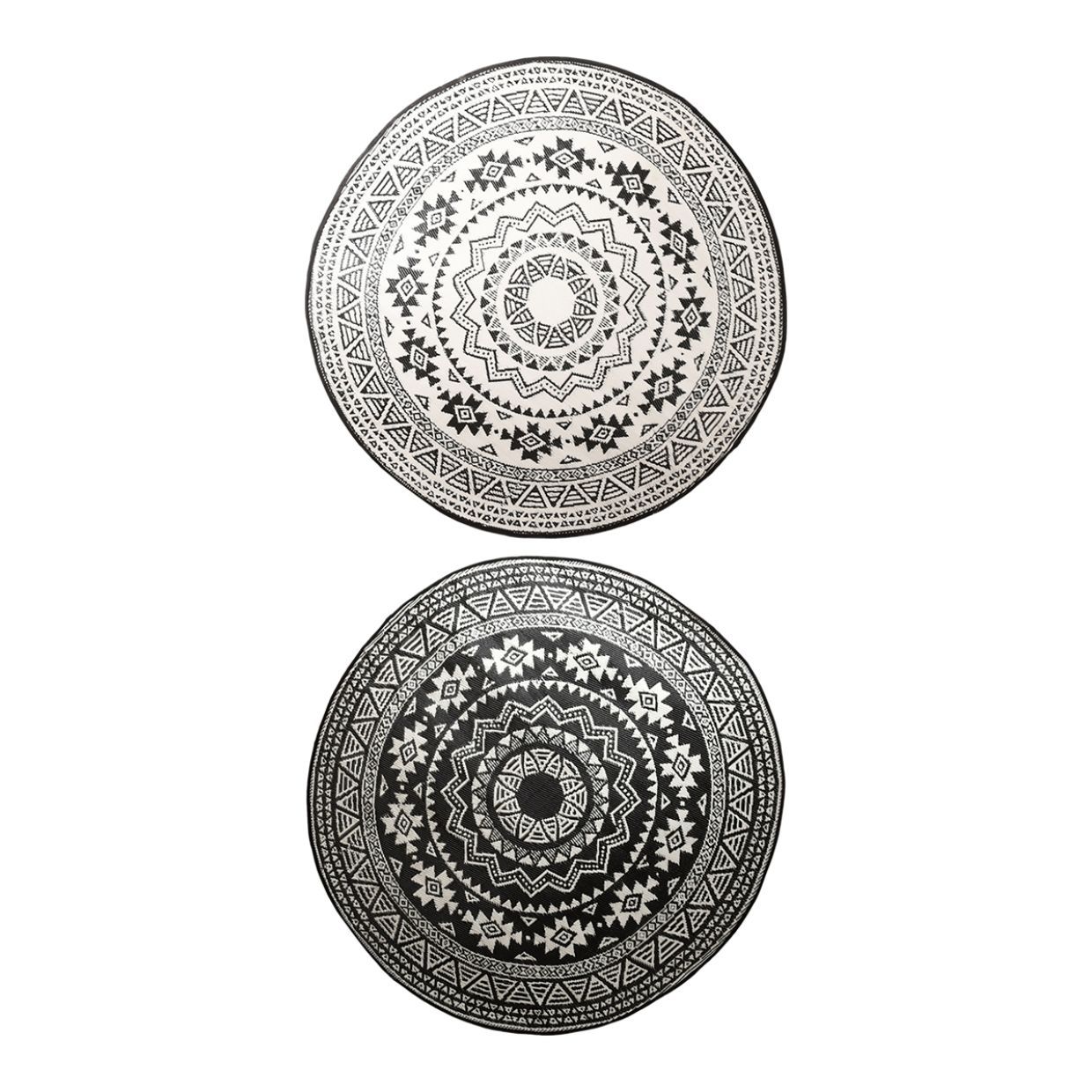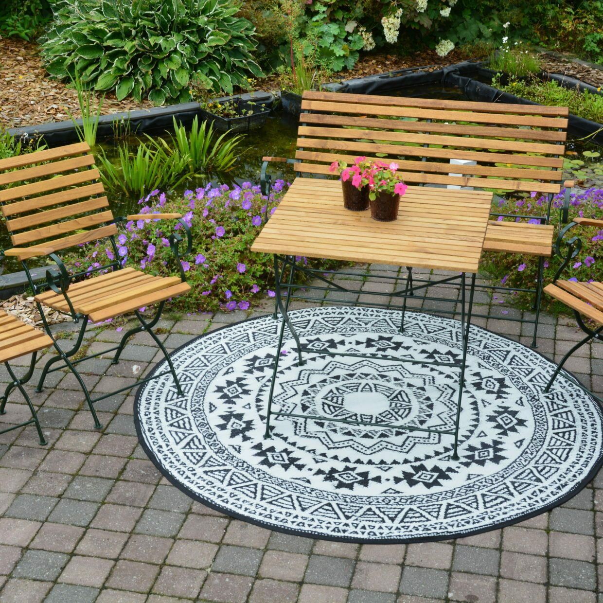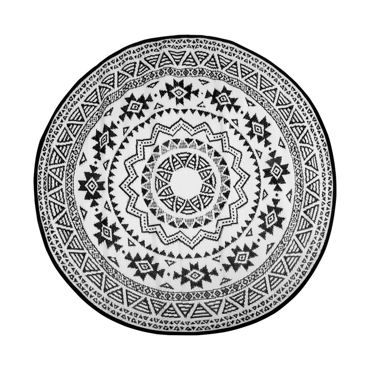 Esschert Design Gartenteppich Outdoor Indoor Teppich Balkon Terrasse Schwarz Weiß Rund Ø 180 cm