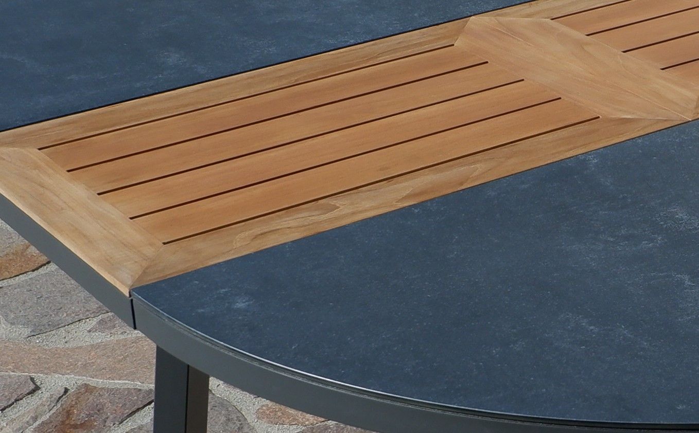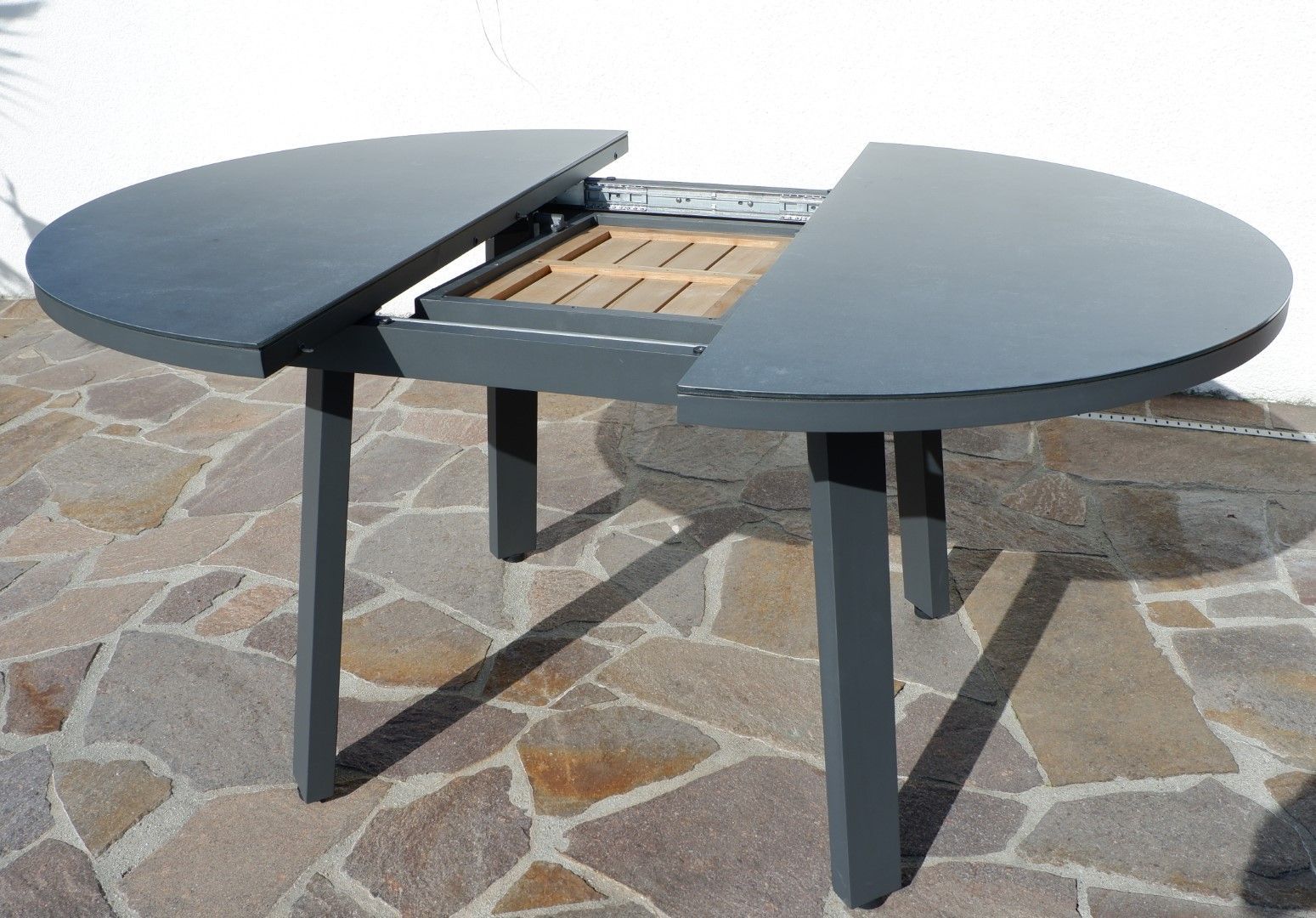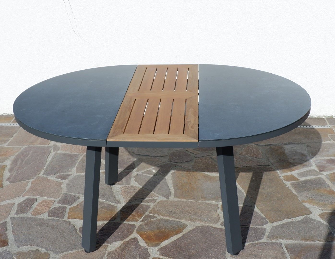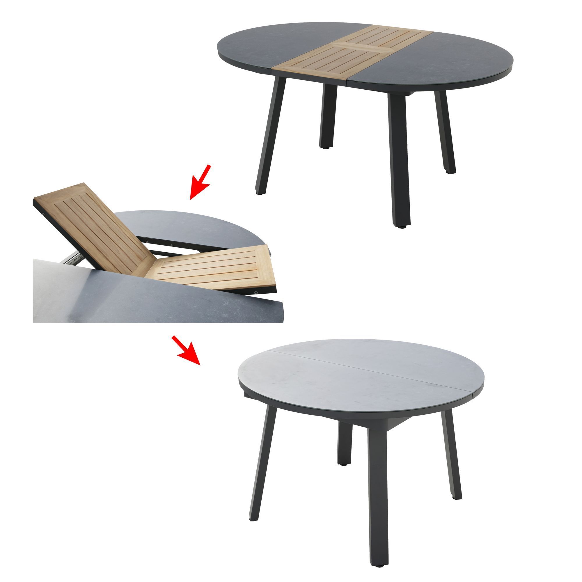Gartentisch Aluminium Glas Teak 120 auf 160 cm ausziehbar Durchmesser 120cm