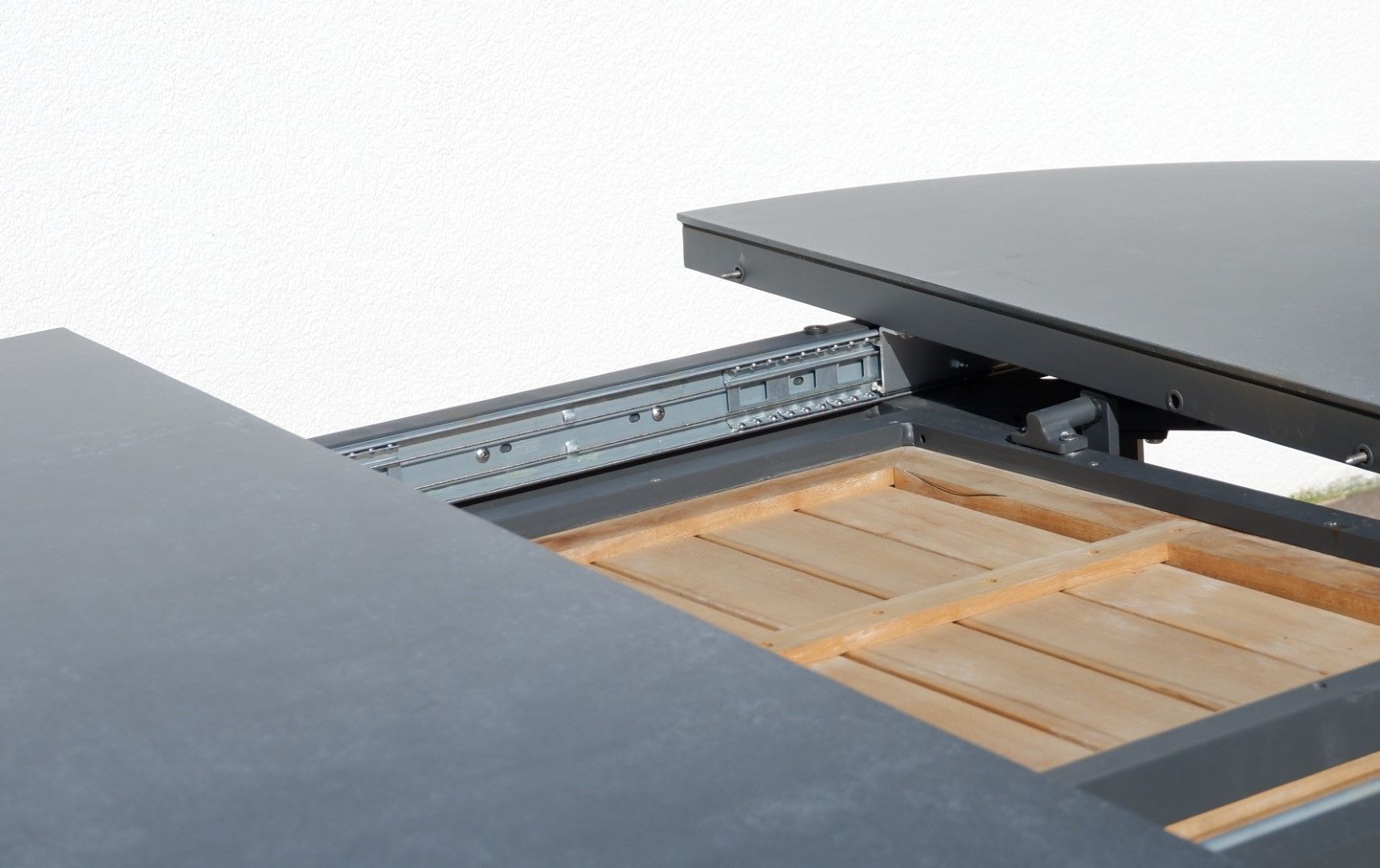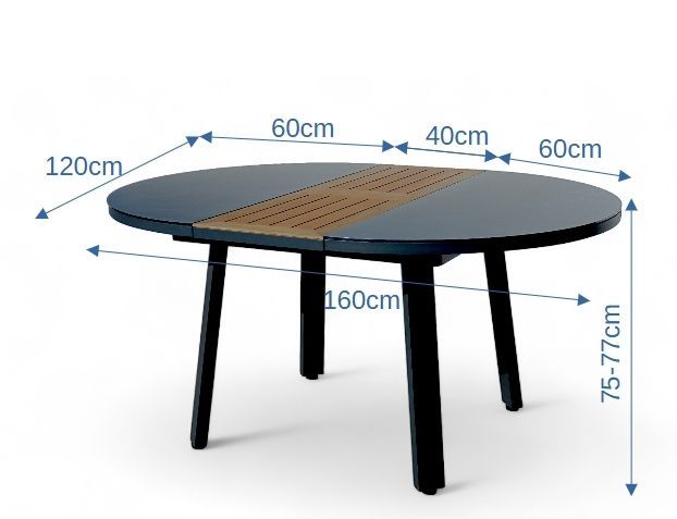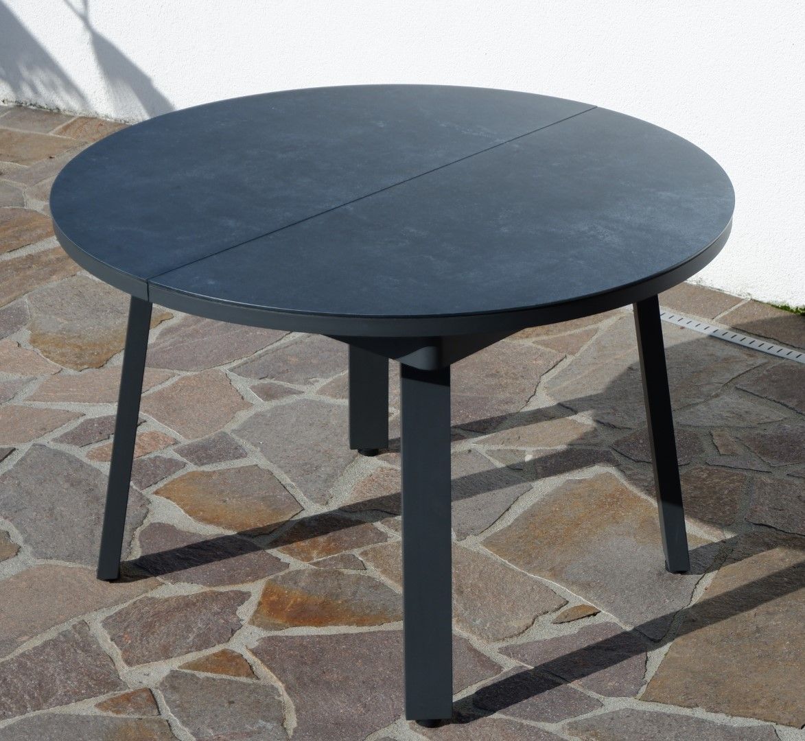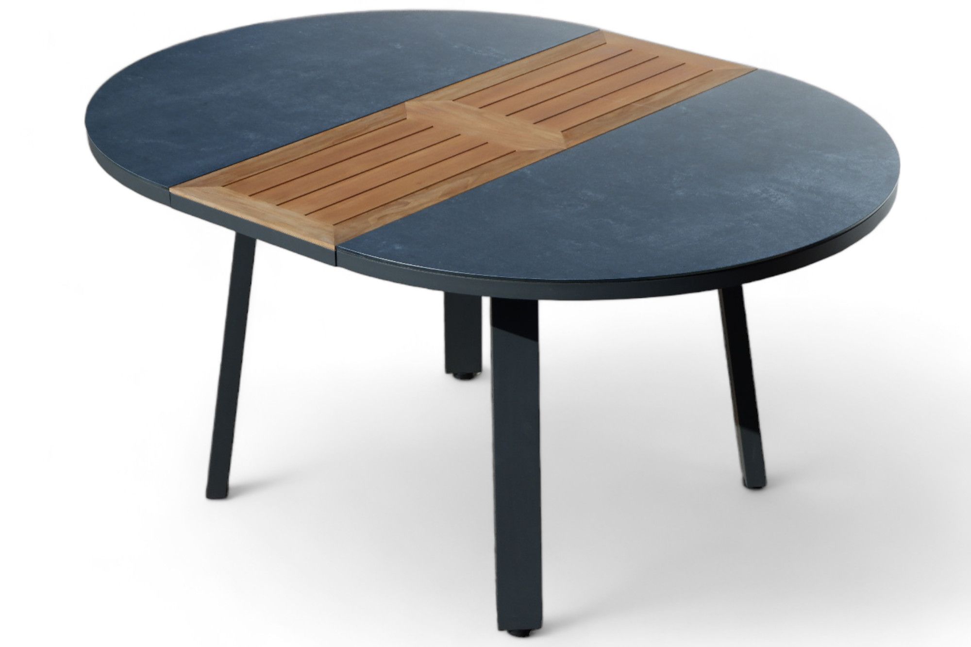 Gartentisch Aluminium Glas Teak 120 auf 160 cm ausziehbar Durchmesser 120cm