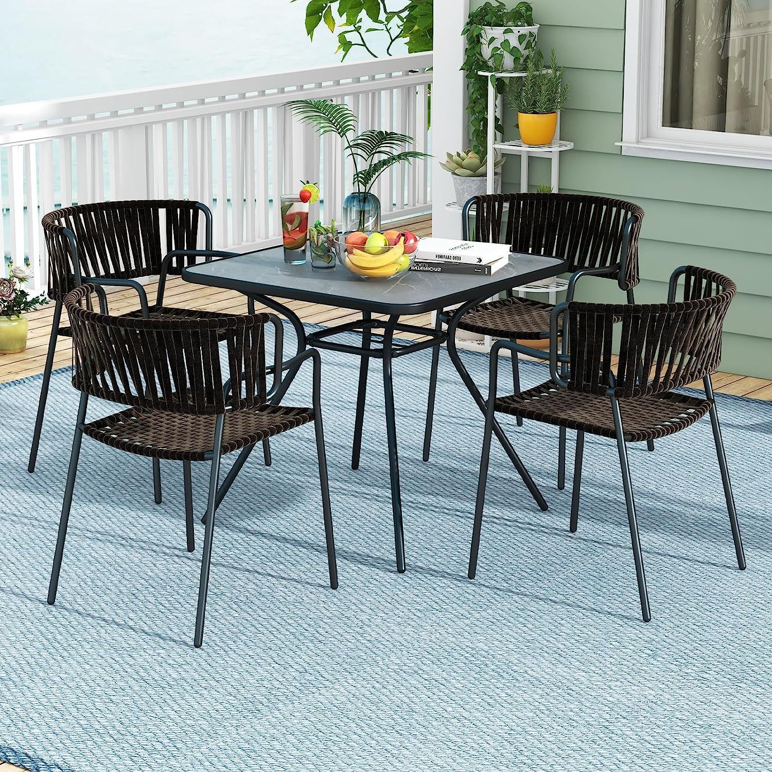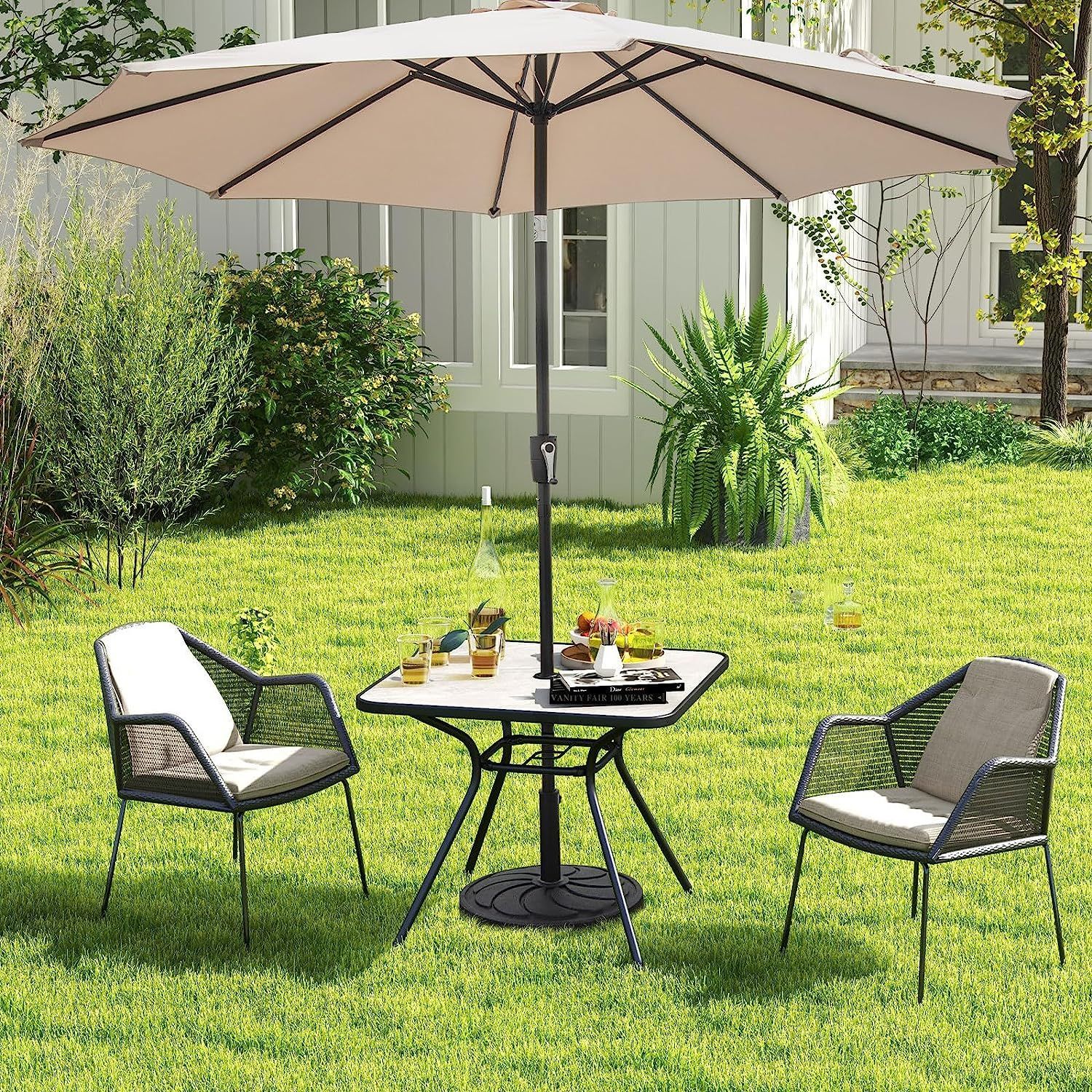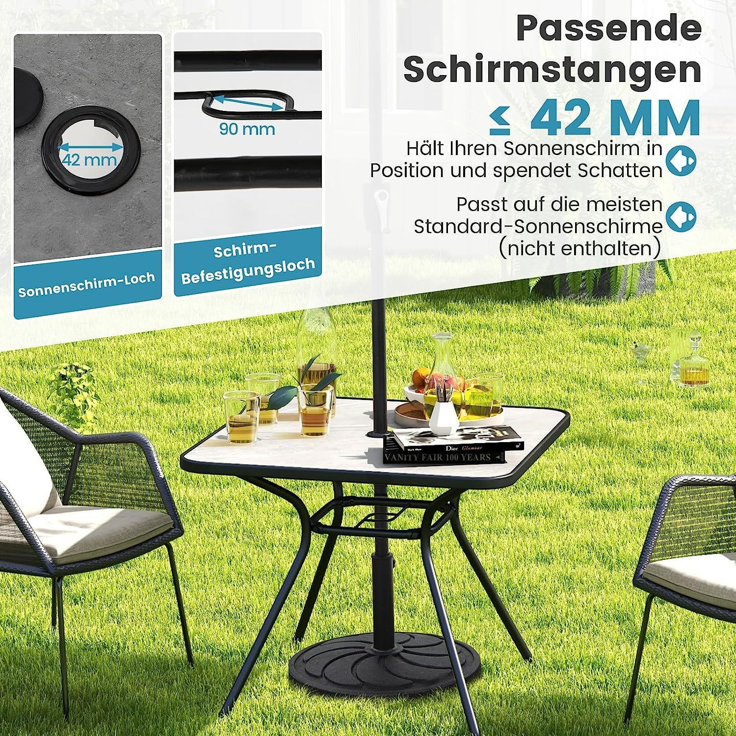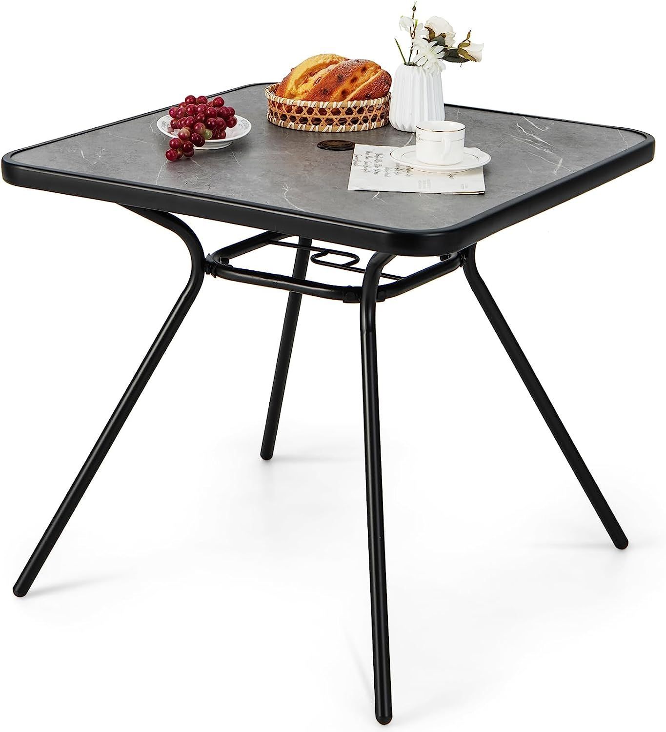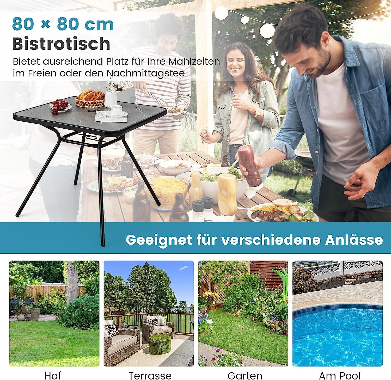 Gartentisch mit Tischplatte aus Kunstmarmor, 80 x 80 x 72,5 cm Terrassentisch