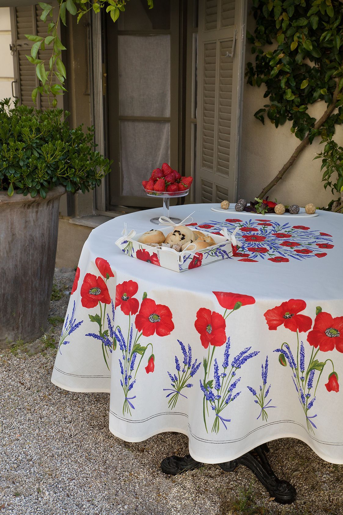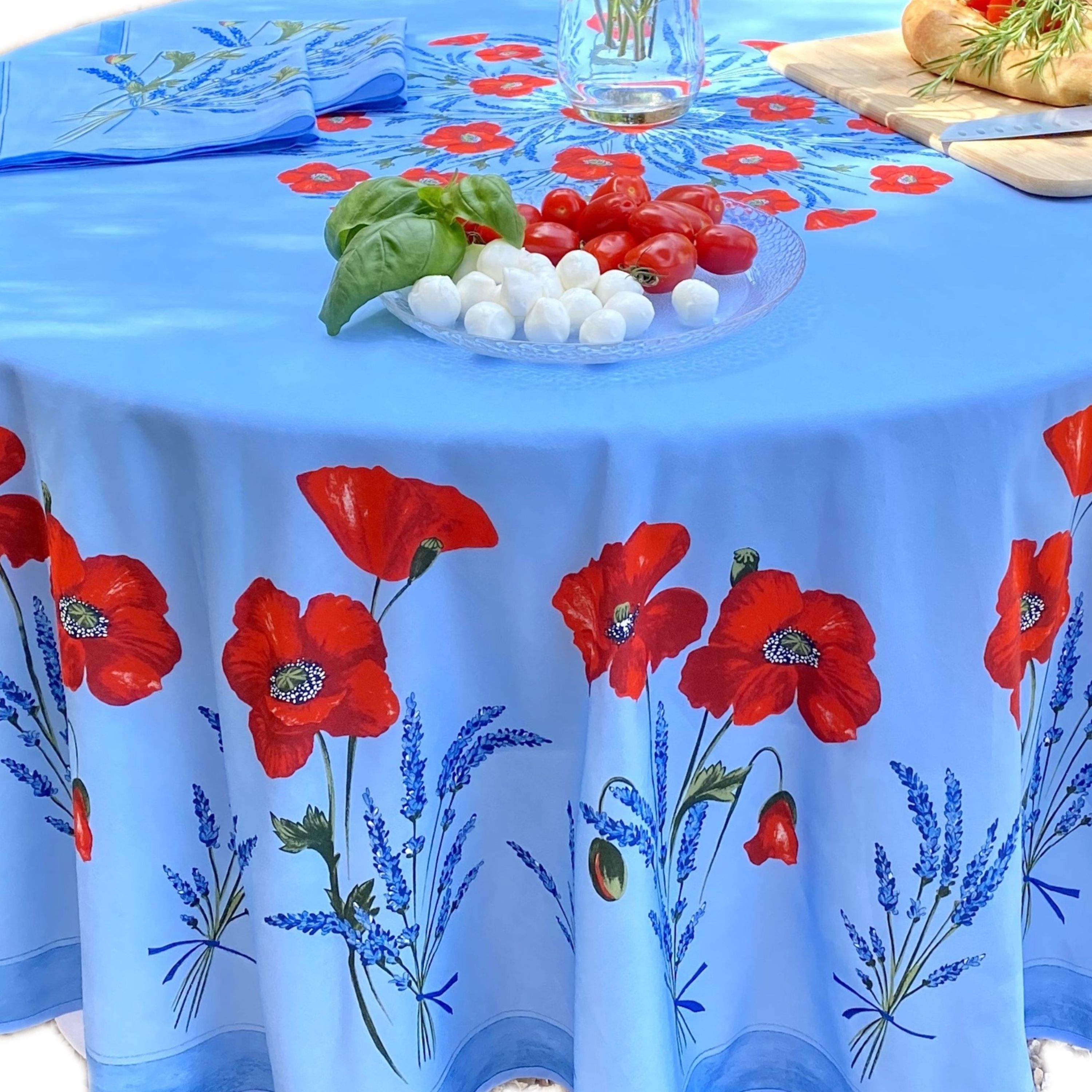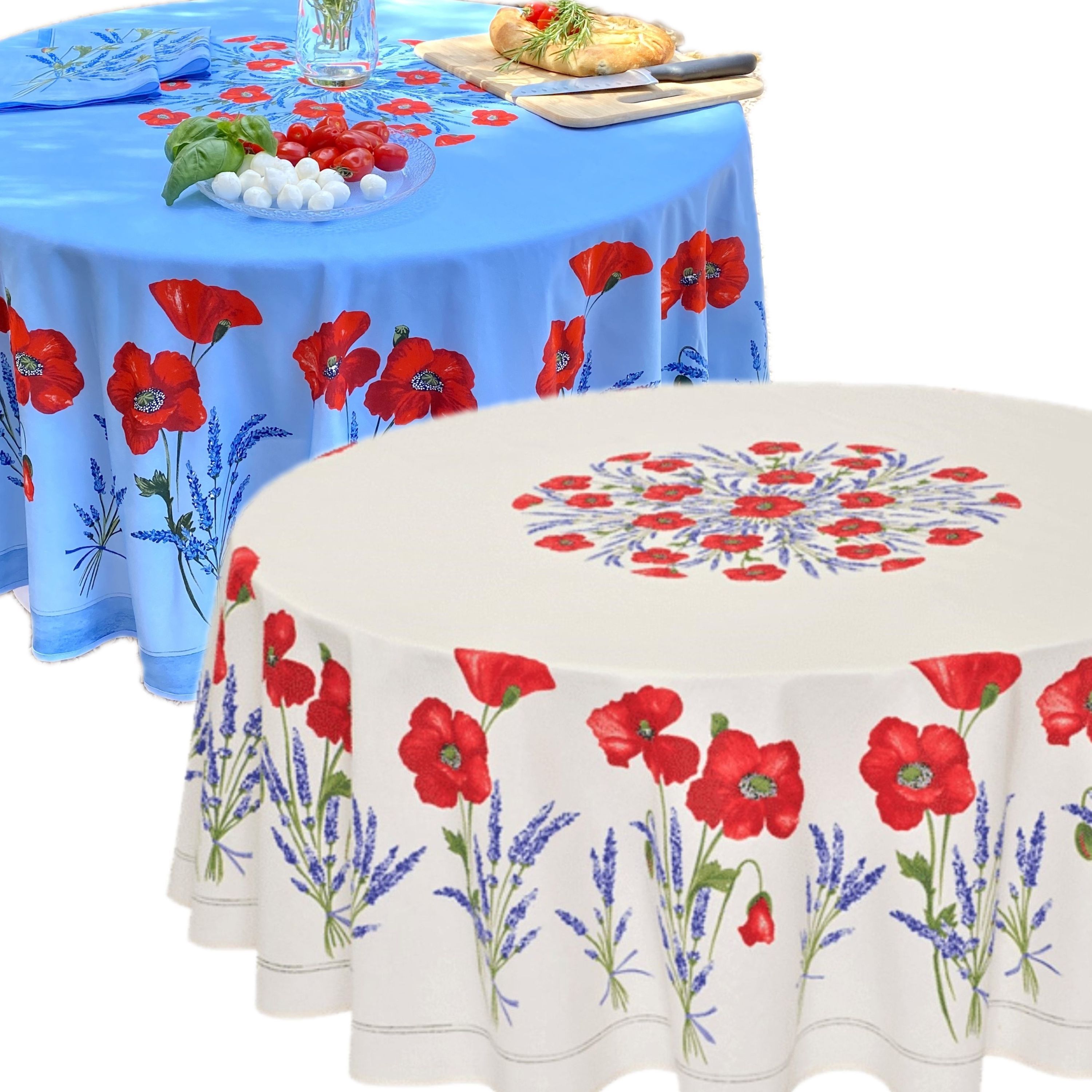 Gartentischdecke Baumwolle Beschichtet Mohnblume Lavendel Tischdecke Rund 180 cm