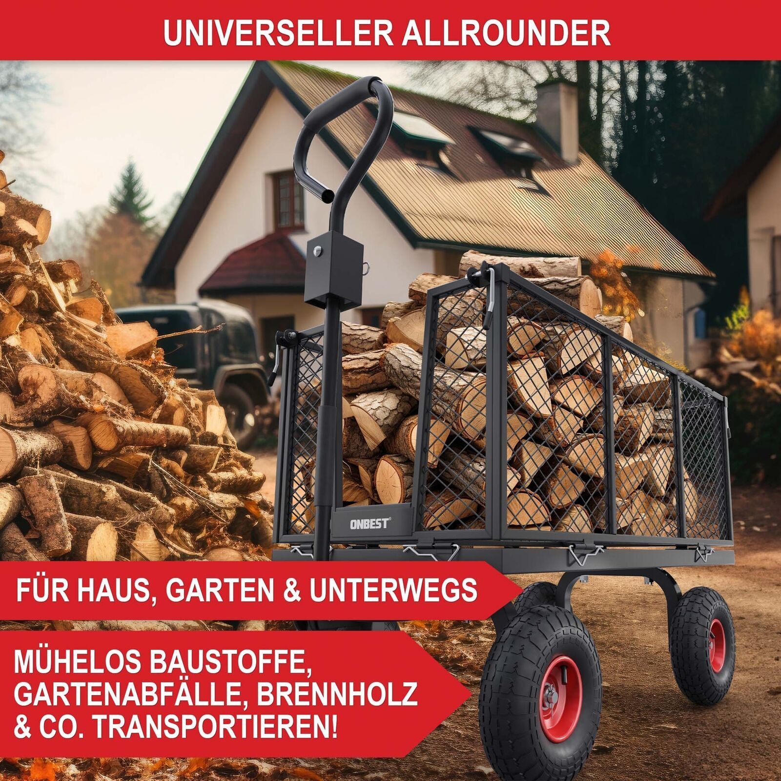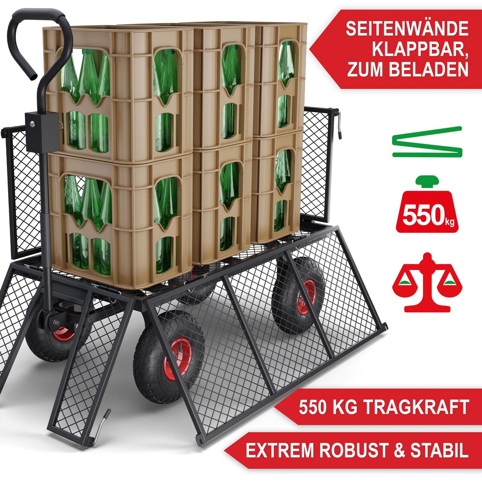 Gartenwagen Bollerwagen Gitter 550kg Transport Geräte Plattform Hand Wagen Karre