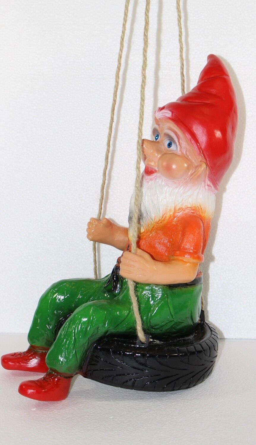 Gartenzwerg Deko Garten Figur Zwerg auf Reifenschaukel aus Kunststoff H 38 cm