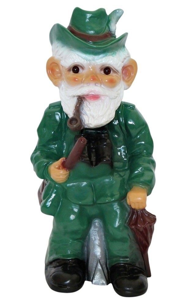 Gartenzwerg Deko Garten Figur Zwerg Förster stehend Flinte und Pfeife H 32 cm