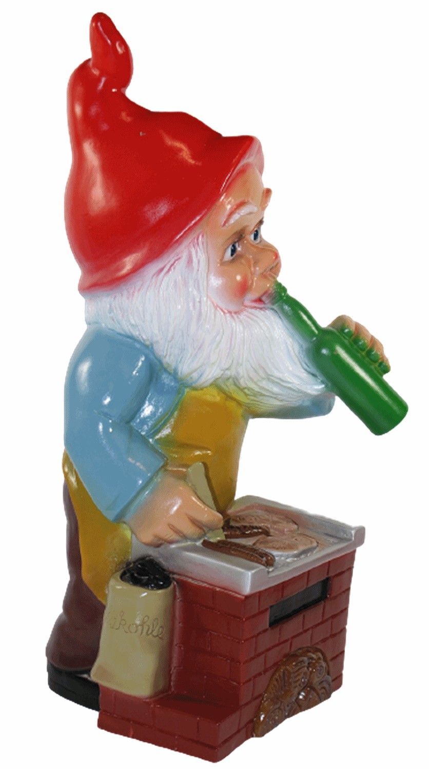 Gartenzwerg Deko Garten Figur Zwerg Grillmeister stehend mit Bierflasche H 45 cm