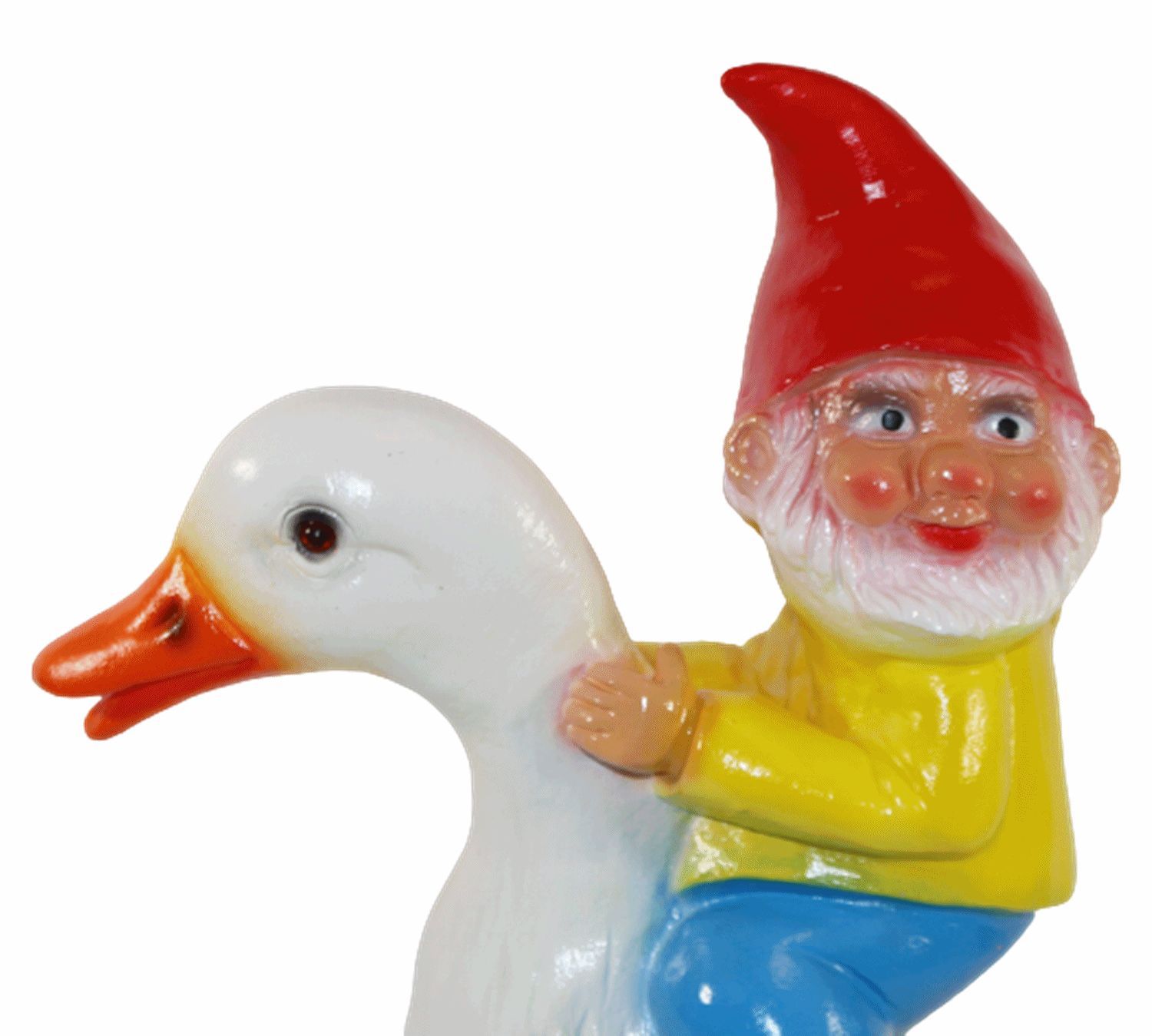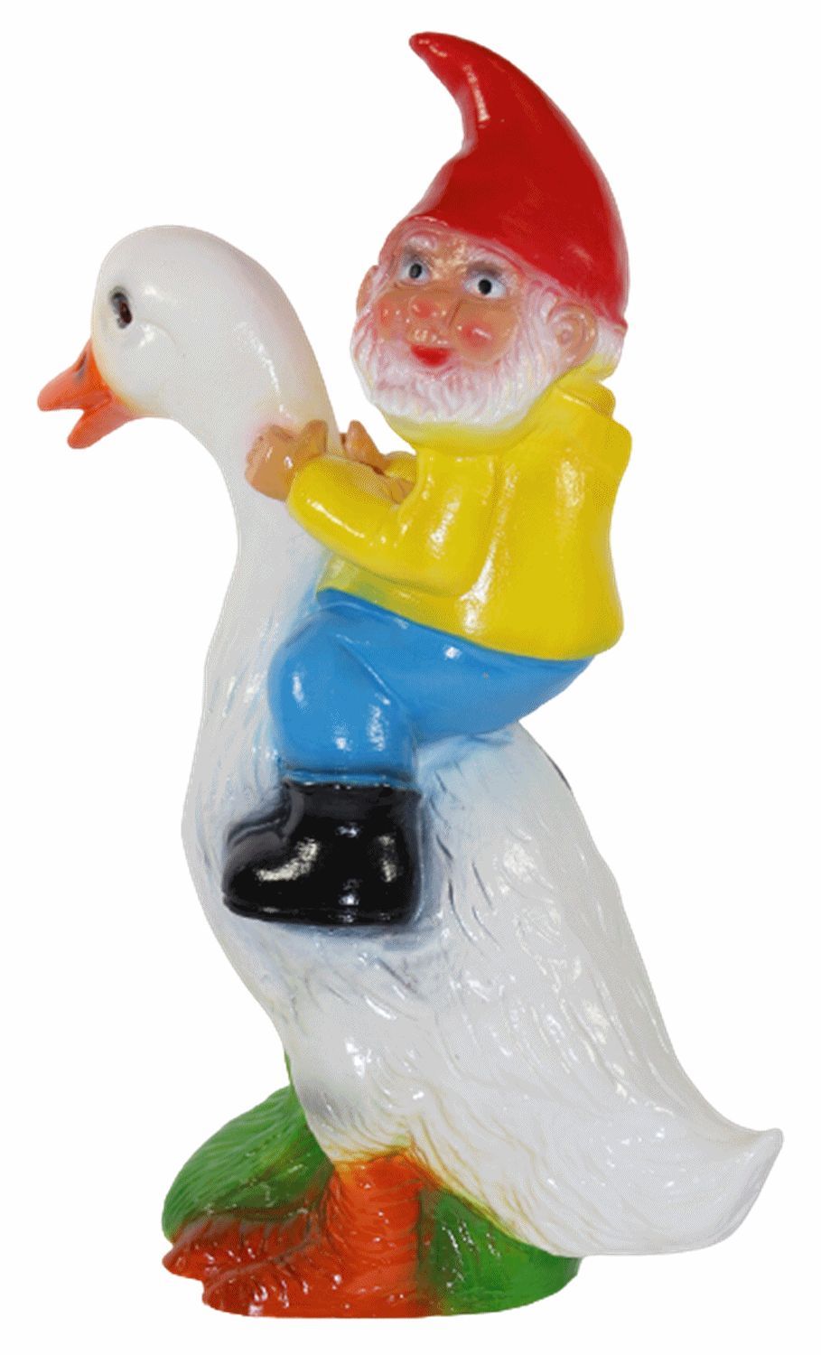 Gartenzwerg Deko Garten Figur Zwerg sitzend auf Ente aus Kunststoff H 39 cm