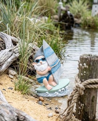 • Deko-Gartenzwerg "Surfer" - Maritimer Windsurfer aus Polyresin