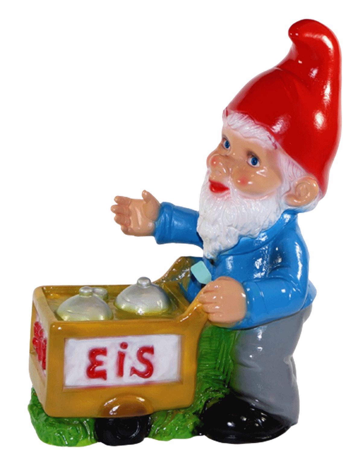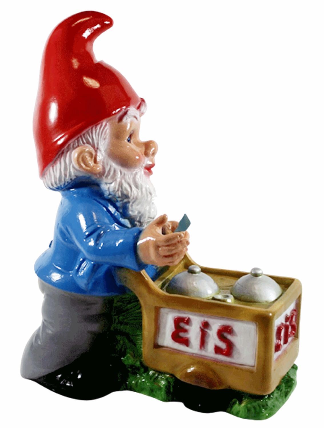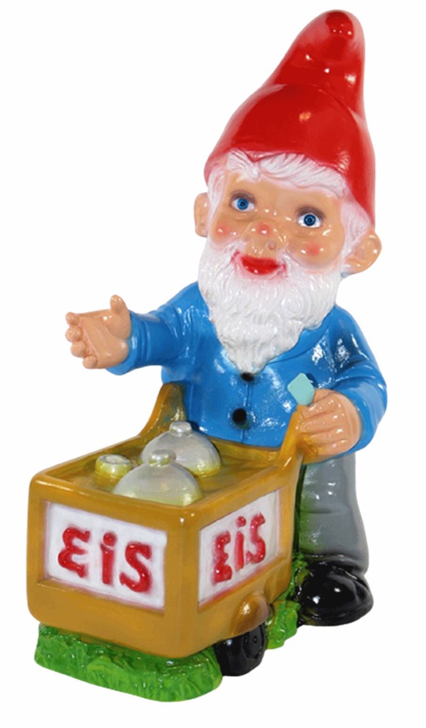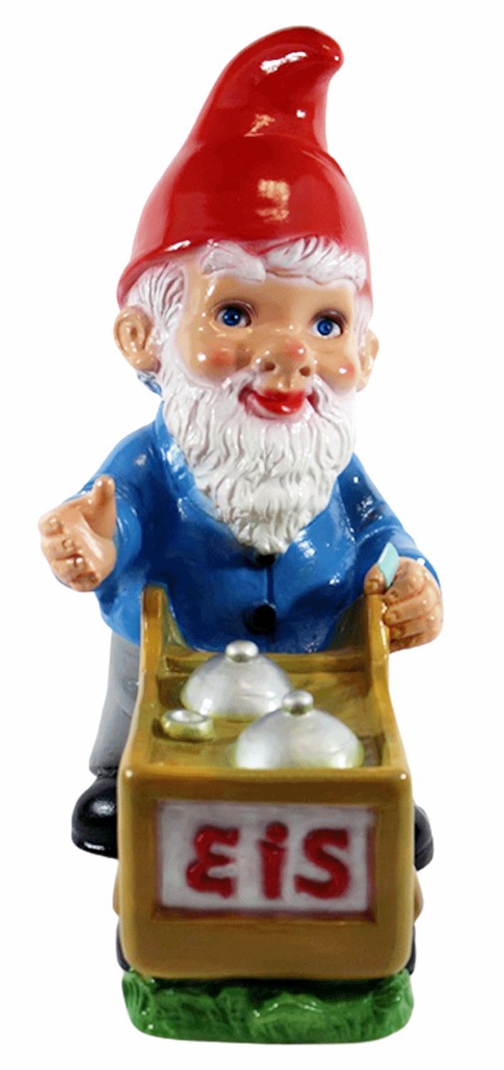 Gartenzwerg Figur Zwerg Eisverkäufer mit mobiler Eisdiele aus Kunststoff H 35 cm