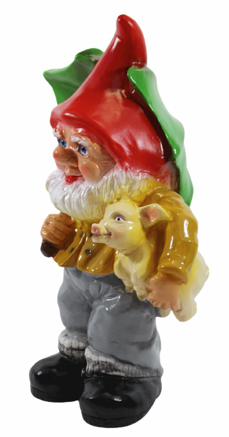 Gartenzwerg Figur Zwerg mit Glücksschweim und Schirm aus Kunststoff H 34 cm
