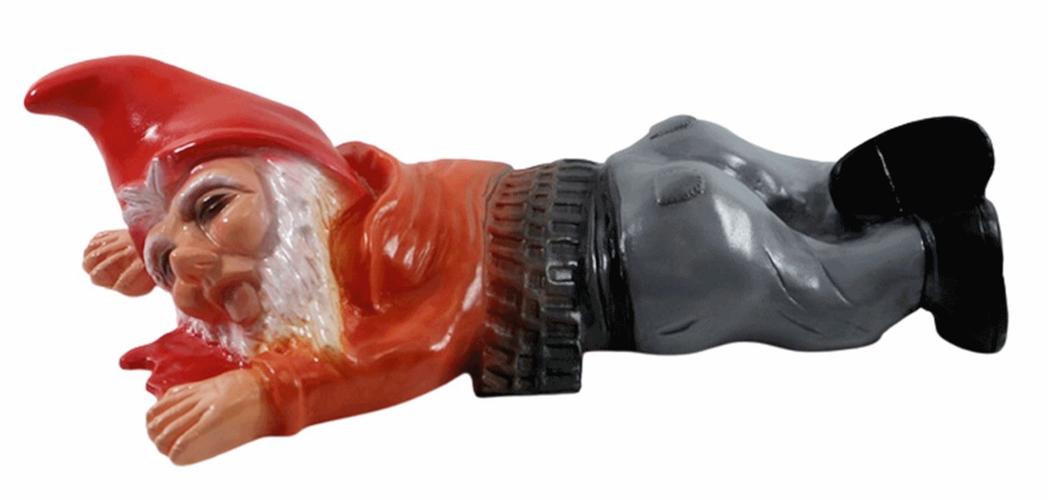 Figur Zwerg liegend H 21 cm Gartenzwerg mit Scherz Bewegungsmelder Pfeifen
