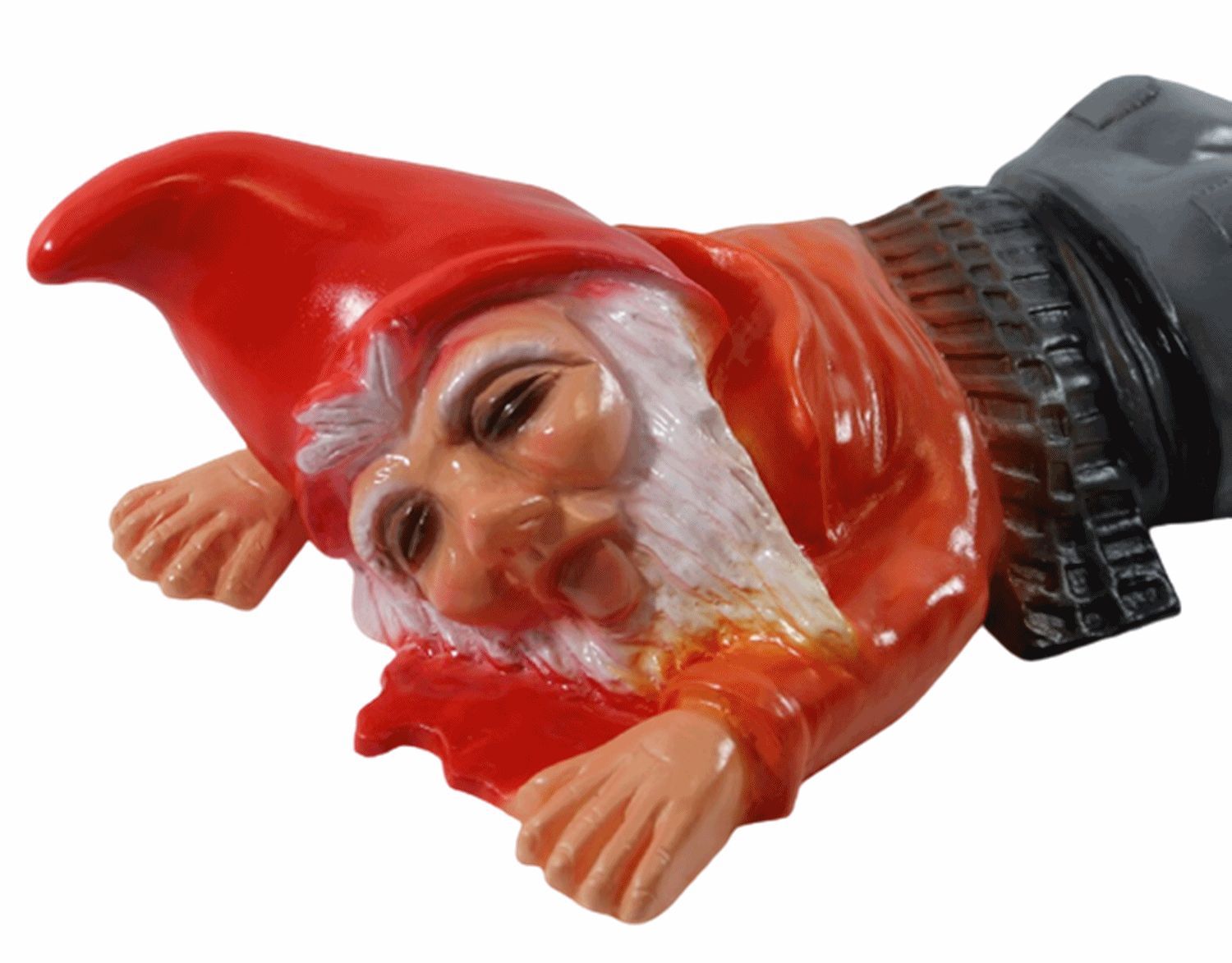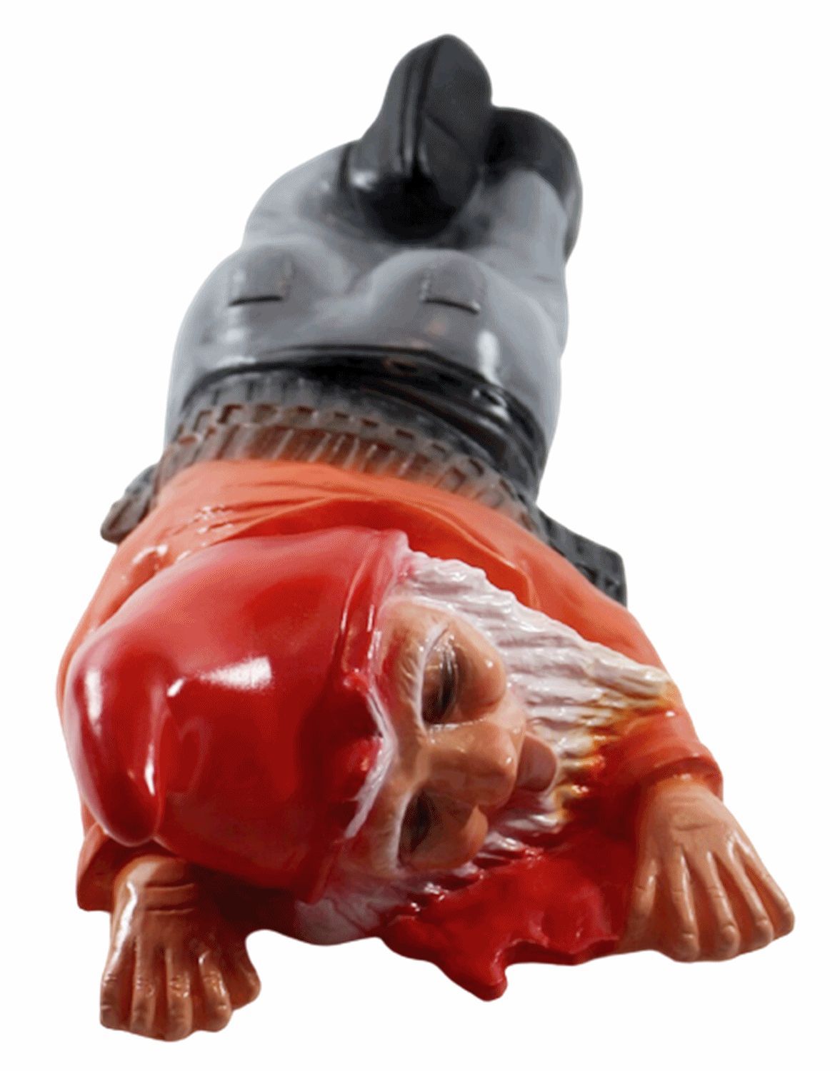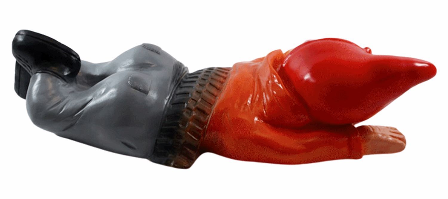 Gartenzwerg Figur Zwerg überfahren liegend in Blutlache aus Kunststoff L 39 cm