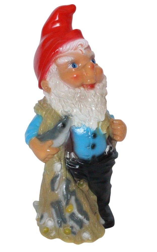 Gartenzwerg Fischer Zwerg mit Fisch in der Hand Höhe 36 cm traditioneller Zwerg