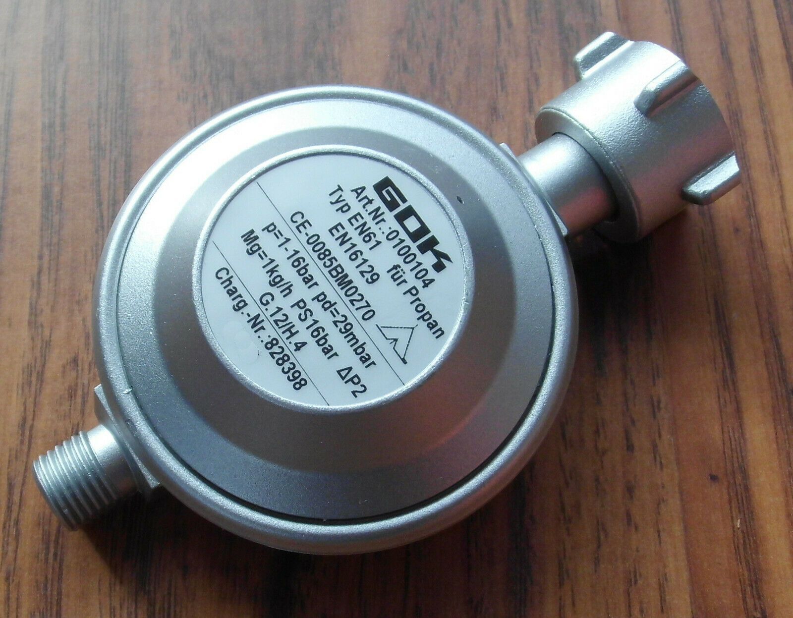 GOK Gas Druck Regler 1,0 kg/ h Gasregler EN 61 für Grill 29/ 30mbar 310f703-1 NEU