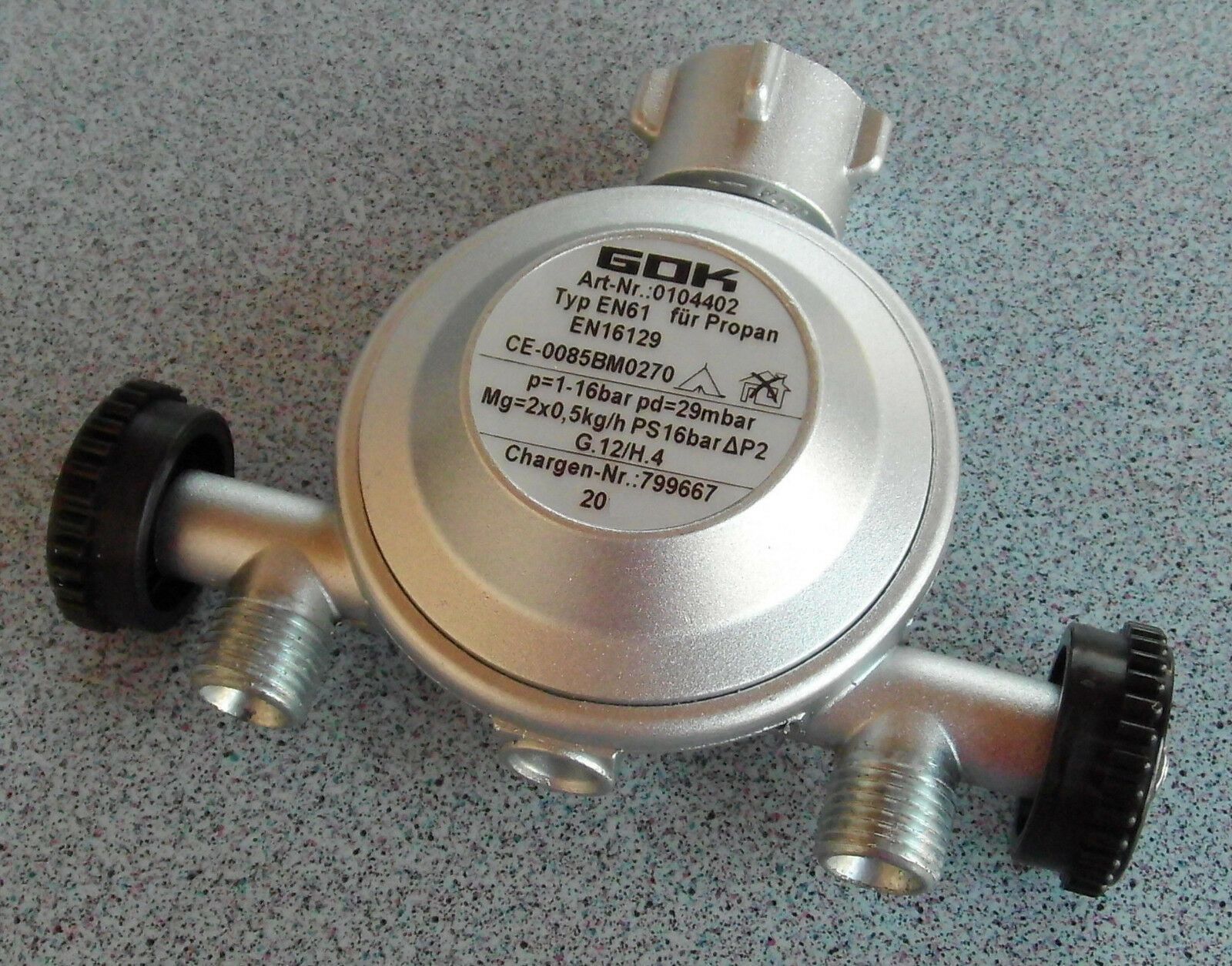 GOK Gas Regler 29/30mbar Gasregler Combi Druckregler Absperrventil 2fach 167470b NEU