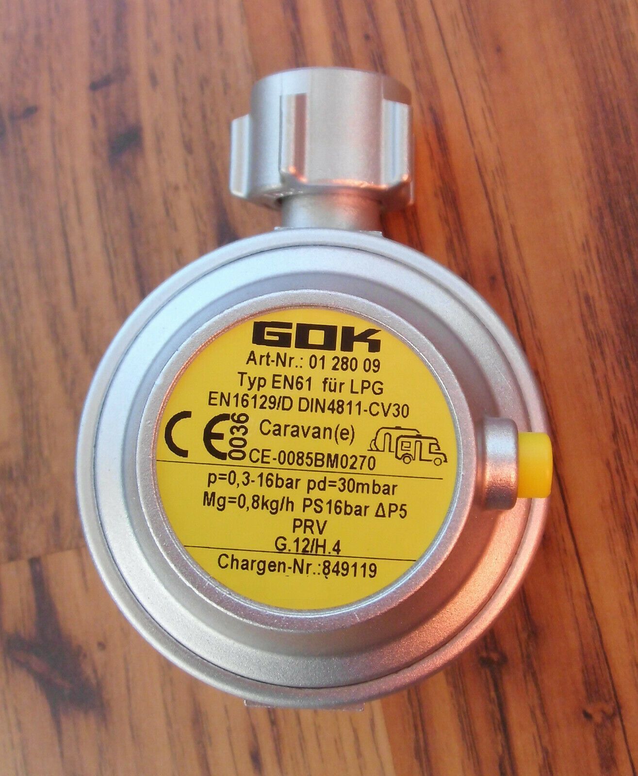 GOK Gas Sicherheits Regler 0,8kgh 90° EN 61 Wohnmobil 30mbar Gasregler 208170b2 NEU