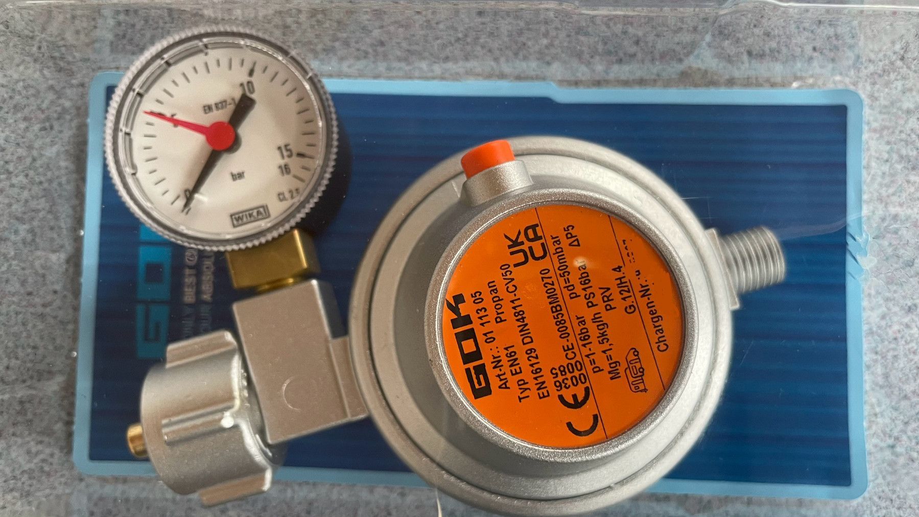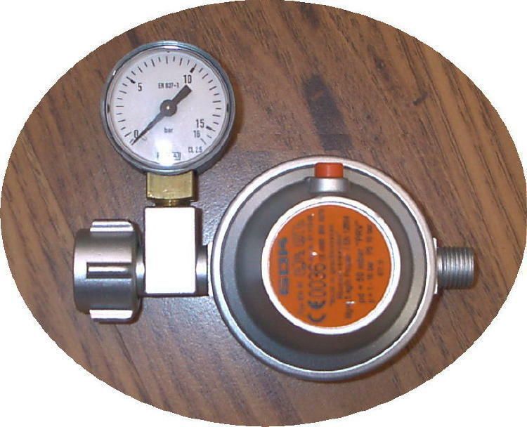 GOK Gas Sicherheits Regler 1,5kgh Manometer Wohnmobil 50mbar Gasregler 310f723 NEU