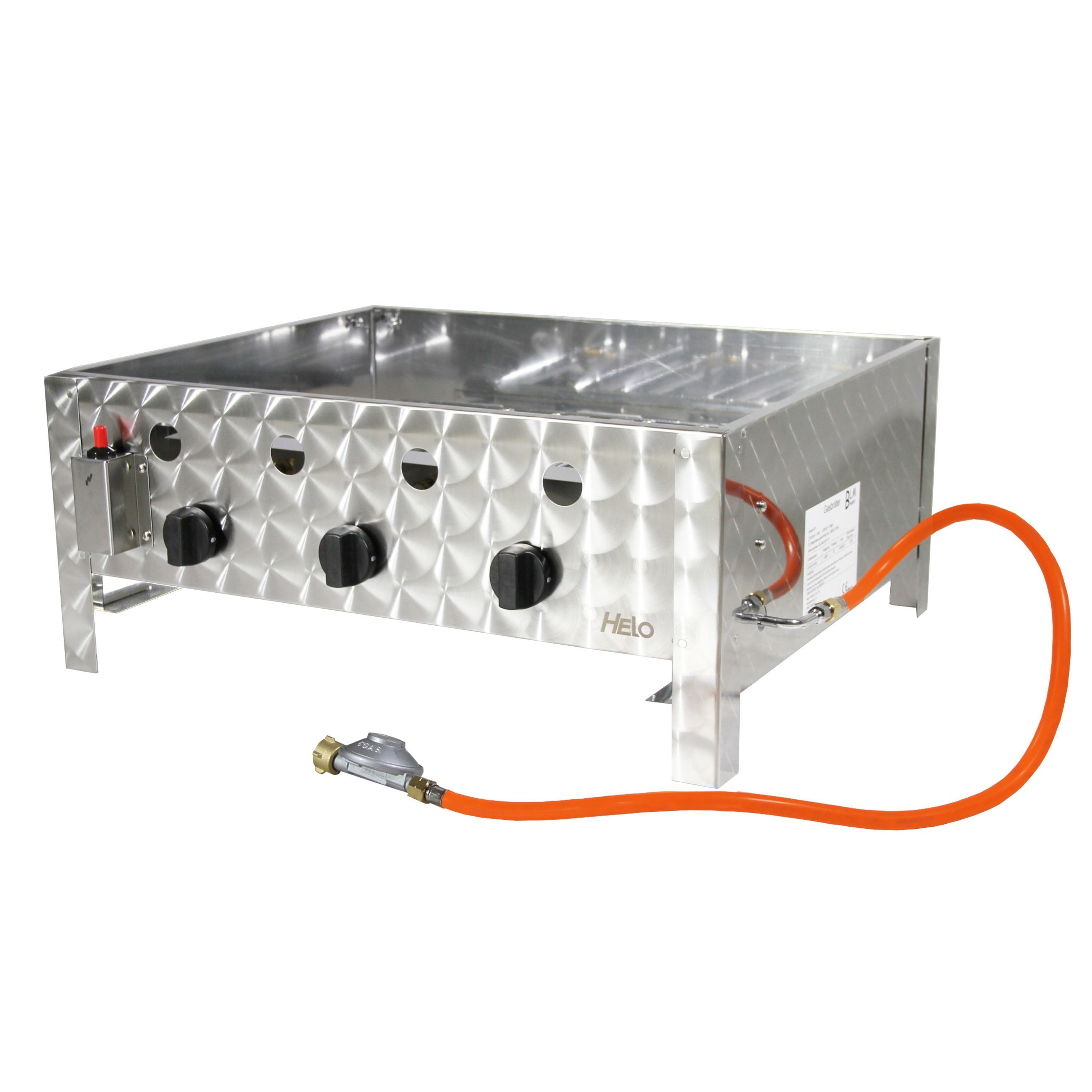 Gasbräter Gasgrill Edelstahl Gestell 10 kW 3 flammig BBQ Gasbrenner B01 + G04