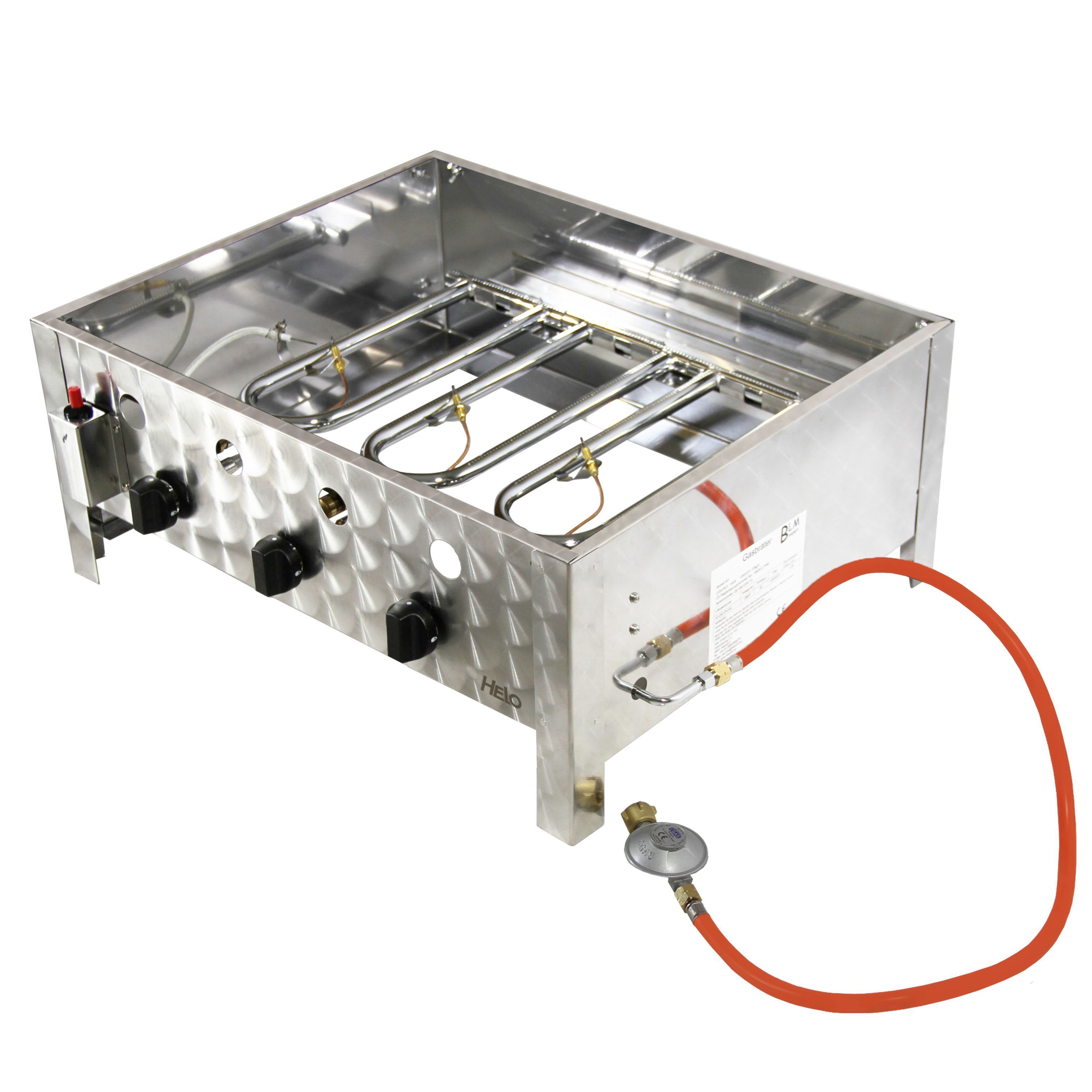 Gasbräter Gasgrill Gestell 10 kW Edelstahl 3 flammig Gasschlauch B01 + G03 + G04