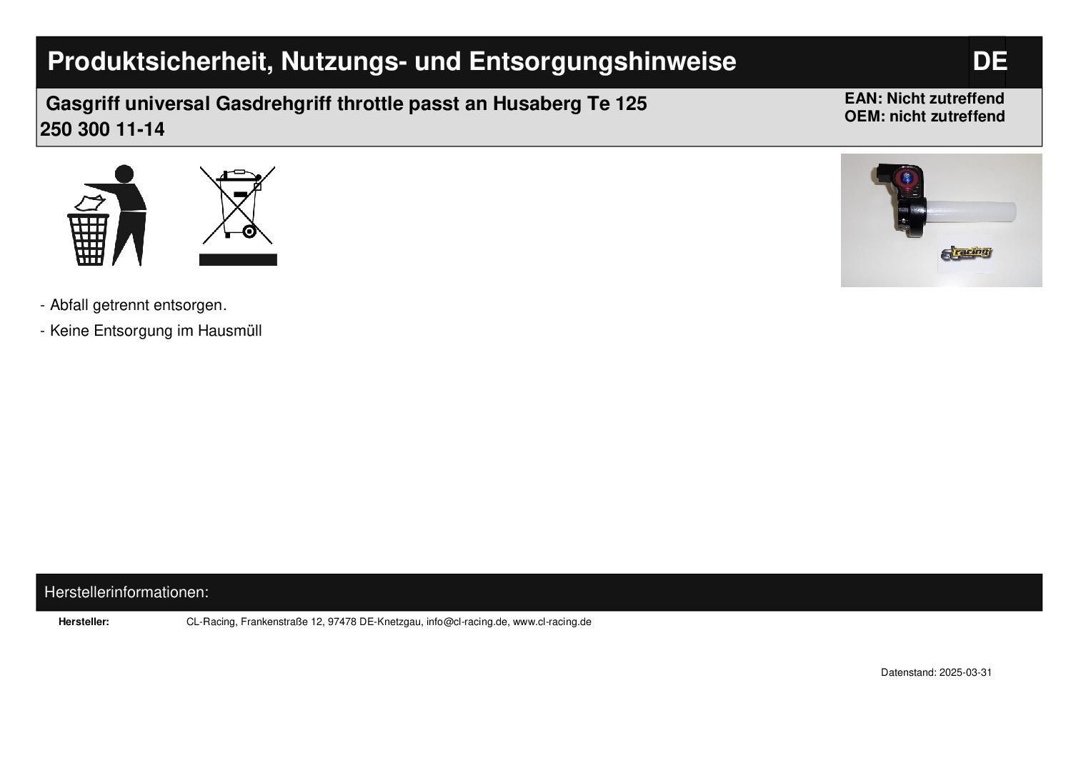Gasgriff universal Gasdrehgriff throttle passt an Husaberg Te 125 250 300 11-14