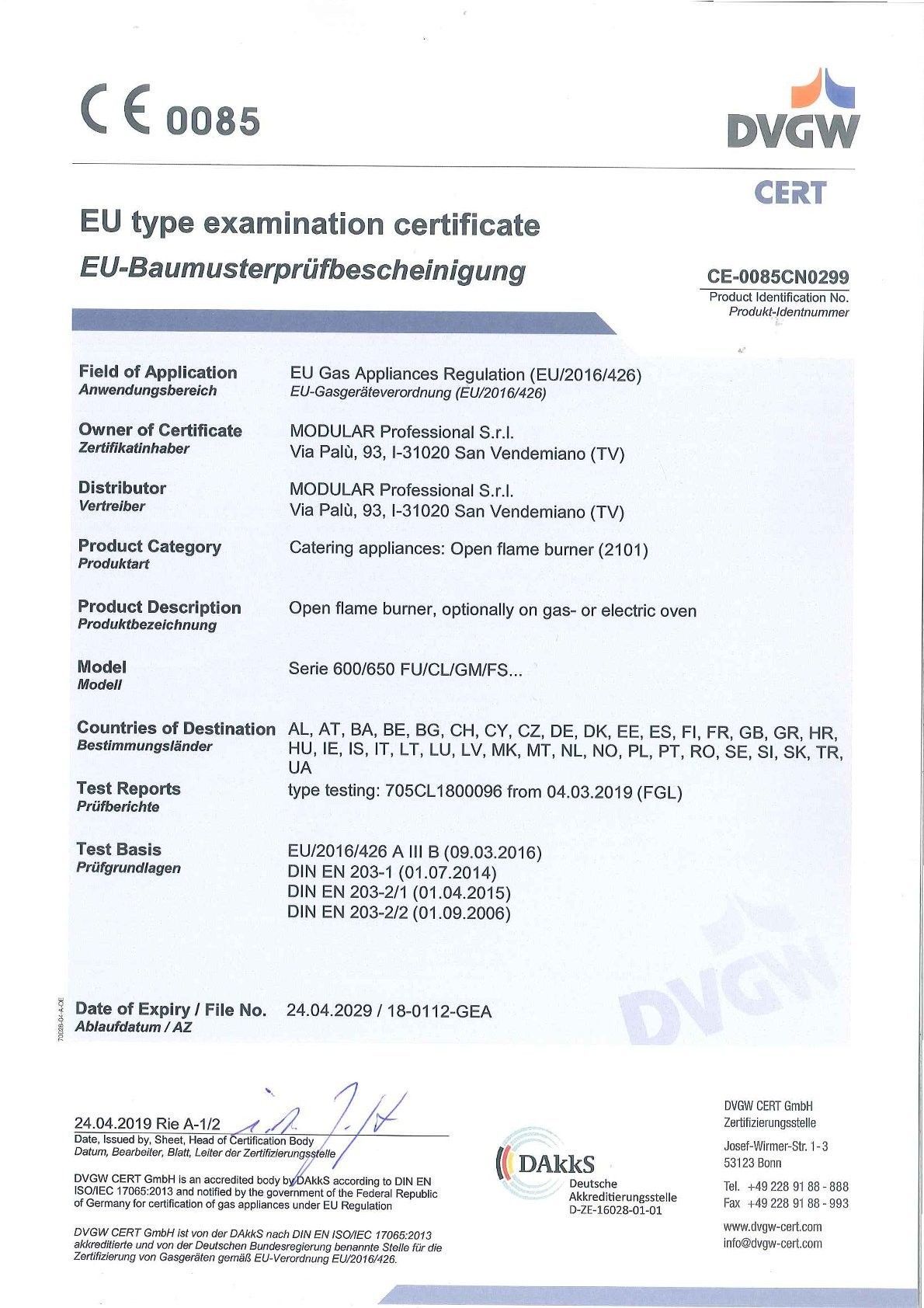 Gasherd Standgerät mit Elektro-Backofen GN 1/1 Hergestellt aus Edelstahl 18/10 AISI 304 Höhenverstellbare Füße aus Edelstahl