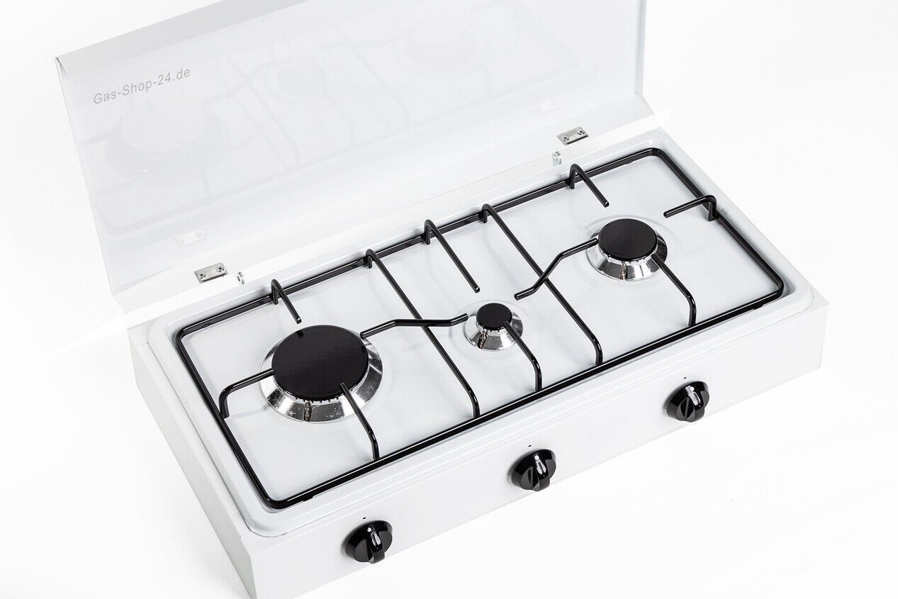 Gaskocher Haushaltskocher 3- flammig Propangas 50 mbar, weiss