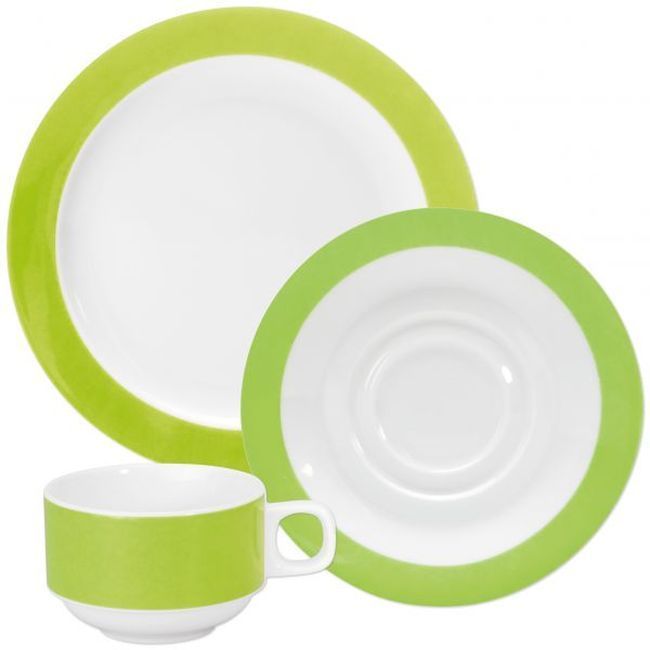 Gastro Geschirr Set 72-tlg. – Grün, spülmaschinenfest, für Kantine & Schule